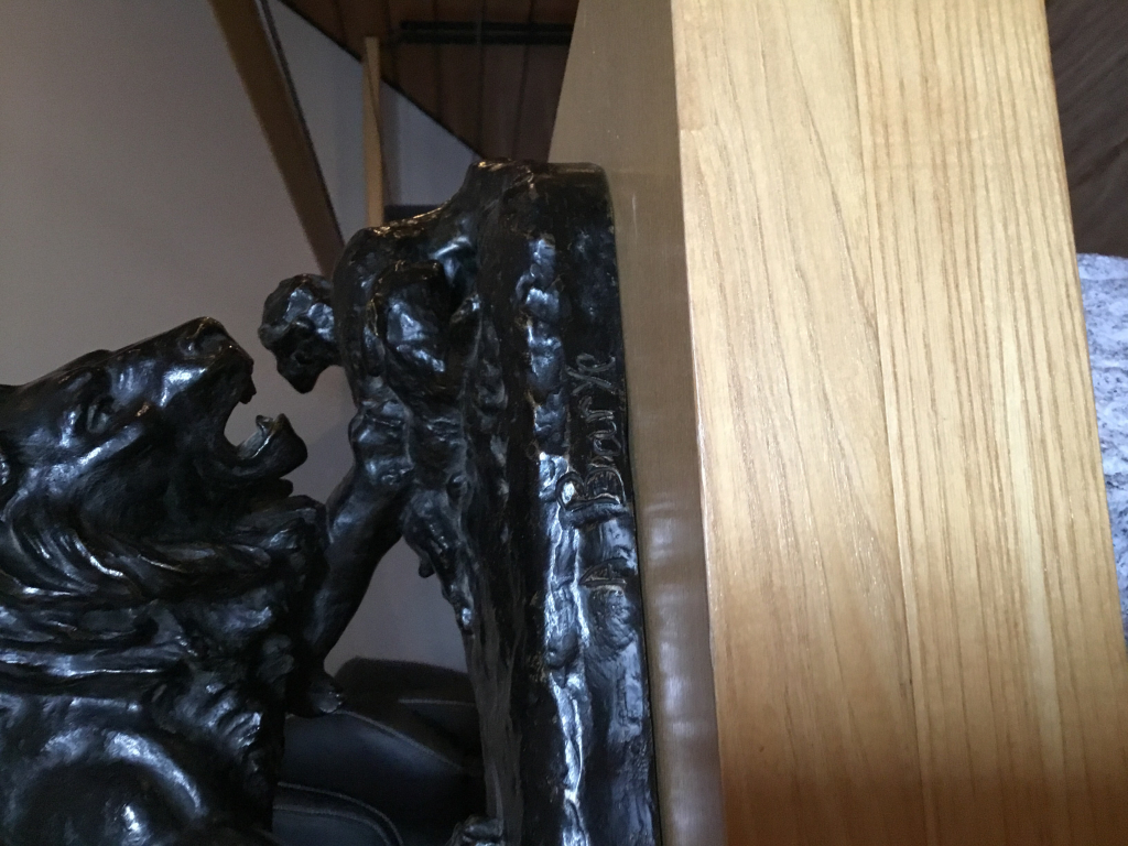 La première approche d’un professionnel du marché de l’art est visuelle. Nos équipes étudient dans un premier temps les différentes photographies de vues d’ensemble et de détails envoyées par le déposant avec sa demande : Bronze signé A.Barye.