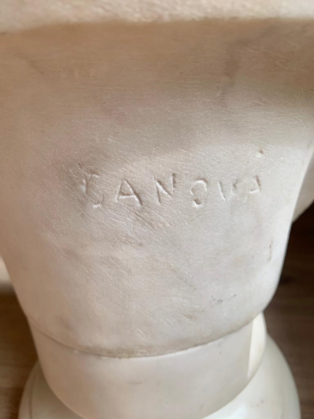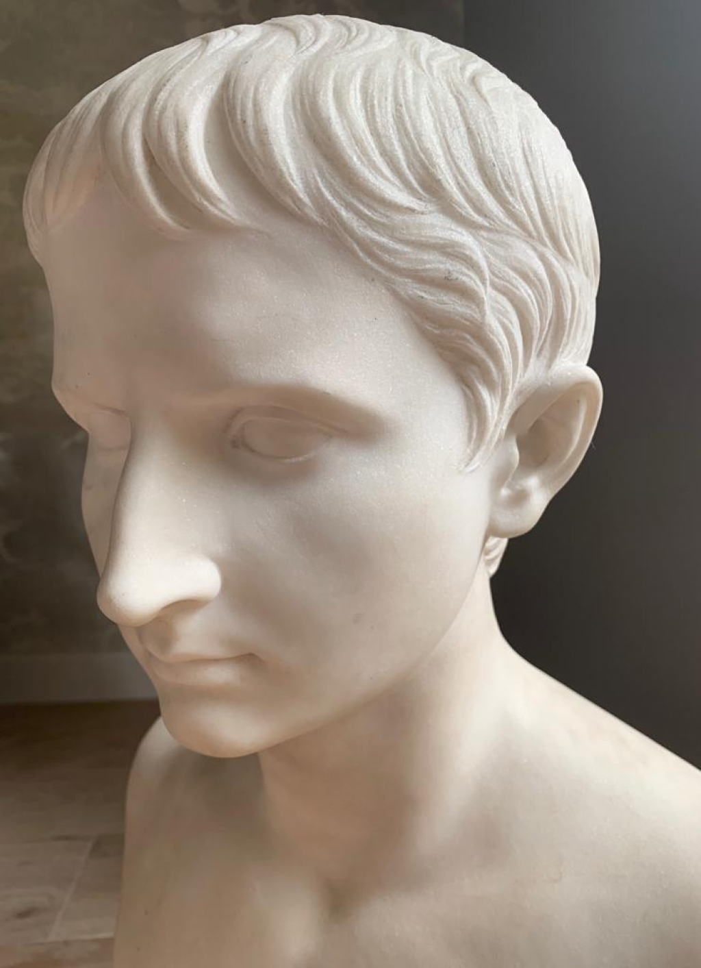 "C'est un buste en marbre blanc du XIX siècle représentant l'empereur Auguste jeune. il y a une signature CANOVA derrière le buste. l'état général de la sculpture est bon."