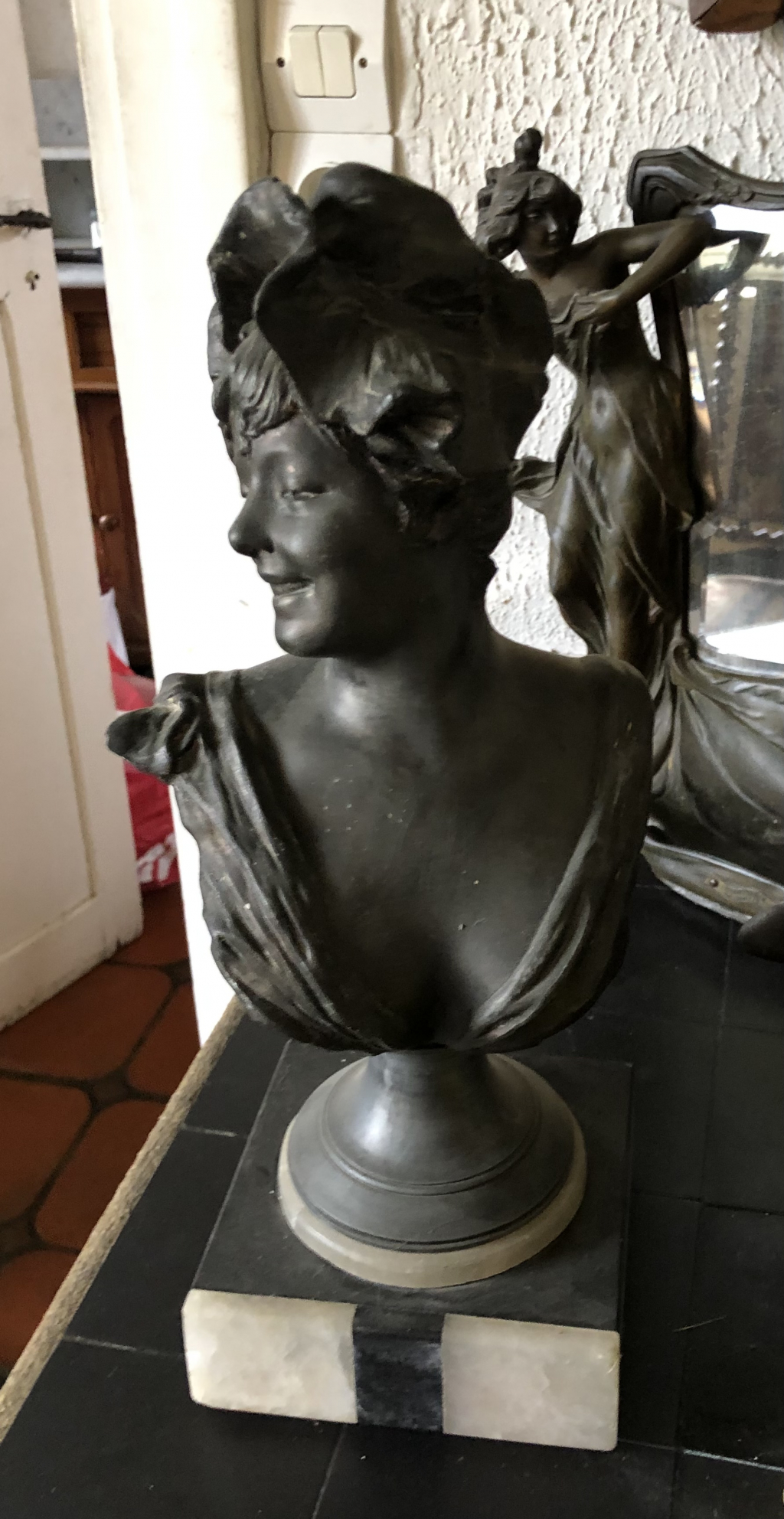 "Buste de femme en bronze sur un socle de Georges Van Der Straeten en bon état"