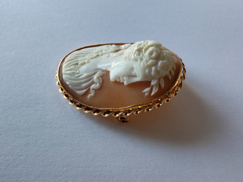 La première approche d’un professionnel du marché de l’art est visuelle. Nos équipes étudient dans un premier temps les différentes photographies de vues d’ensemble et de détails envoyées par le déposant avec sa demande : Camée sculpté à portrait féminin, monture dorée.