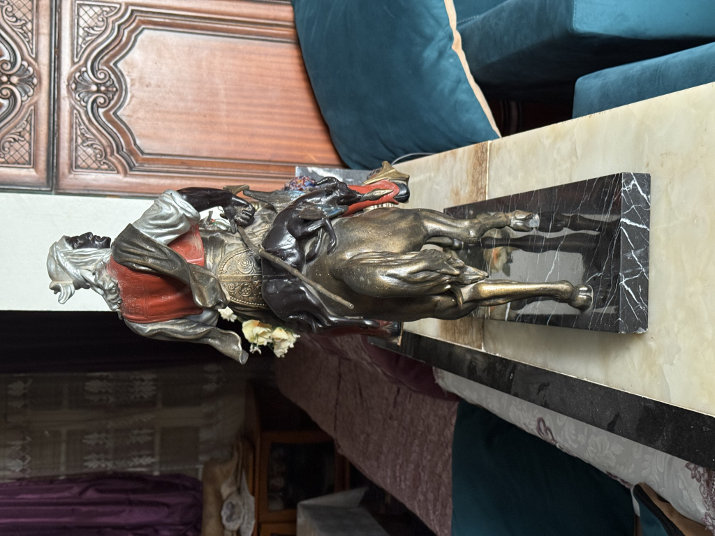 "Chasseur Arabe de retoure de la chasse ,en Bronze sur un socle en marbre .tres bon etat"