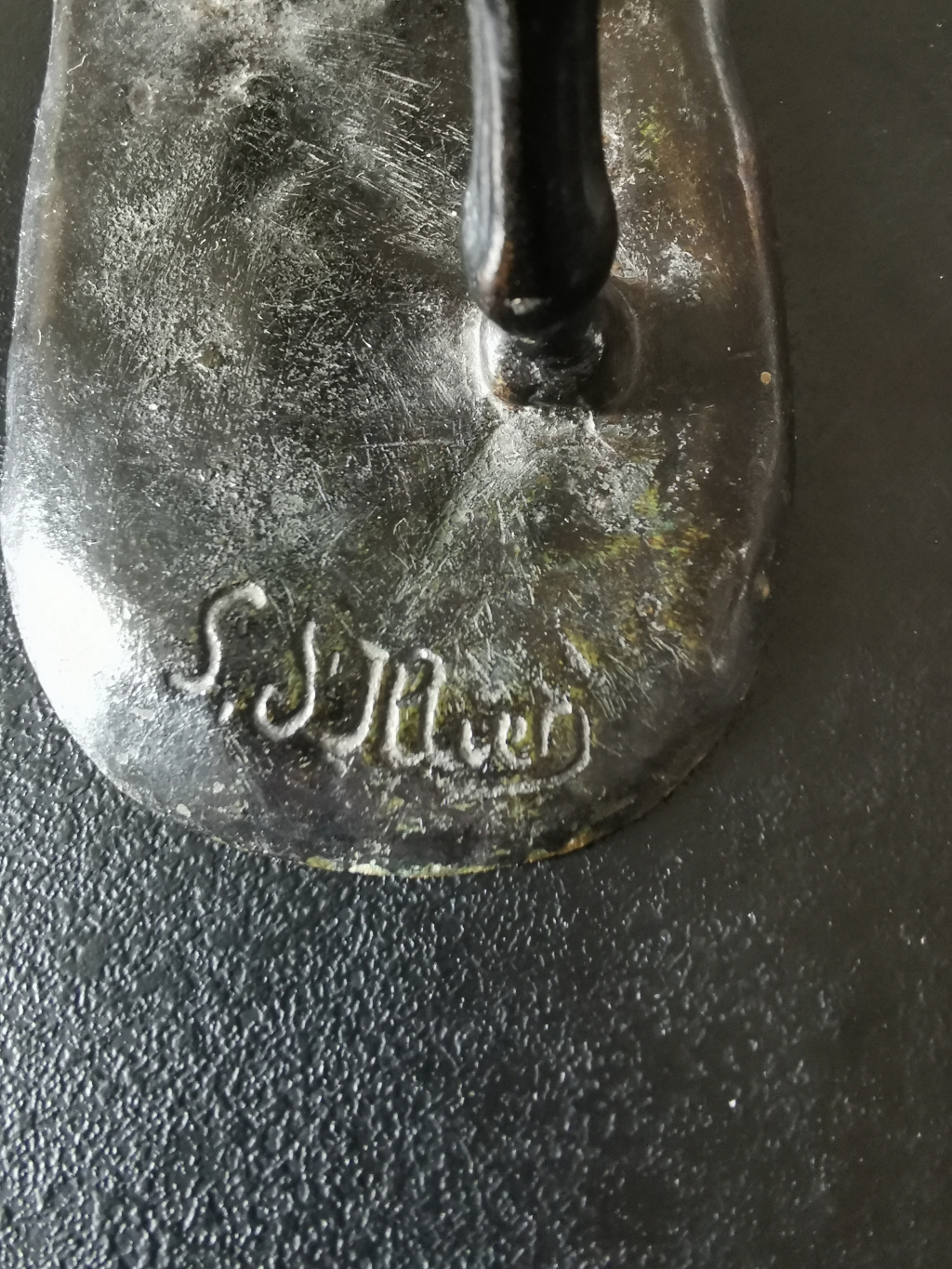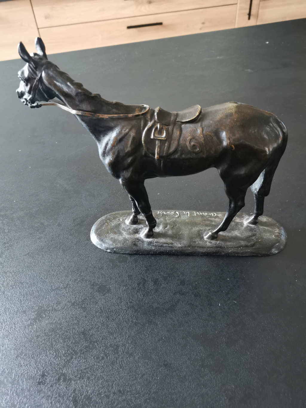 "Sculpture en bronze, cheval avant la course, je n'arrive pas à lire la signature, il paraît en très bon état, aucun éclat ou autre n'est visible"