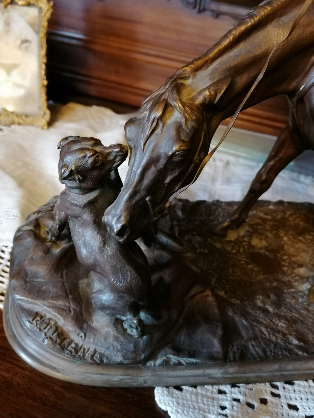 "Cheval avec un chien de PJ Mêne. Pas de cachet de fondeur. Poids total 7,7kgs"