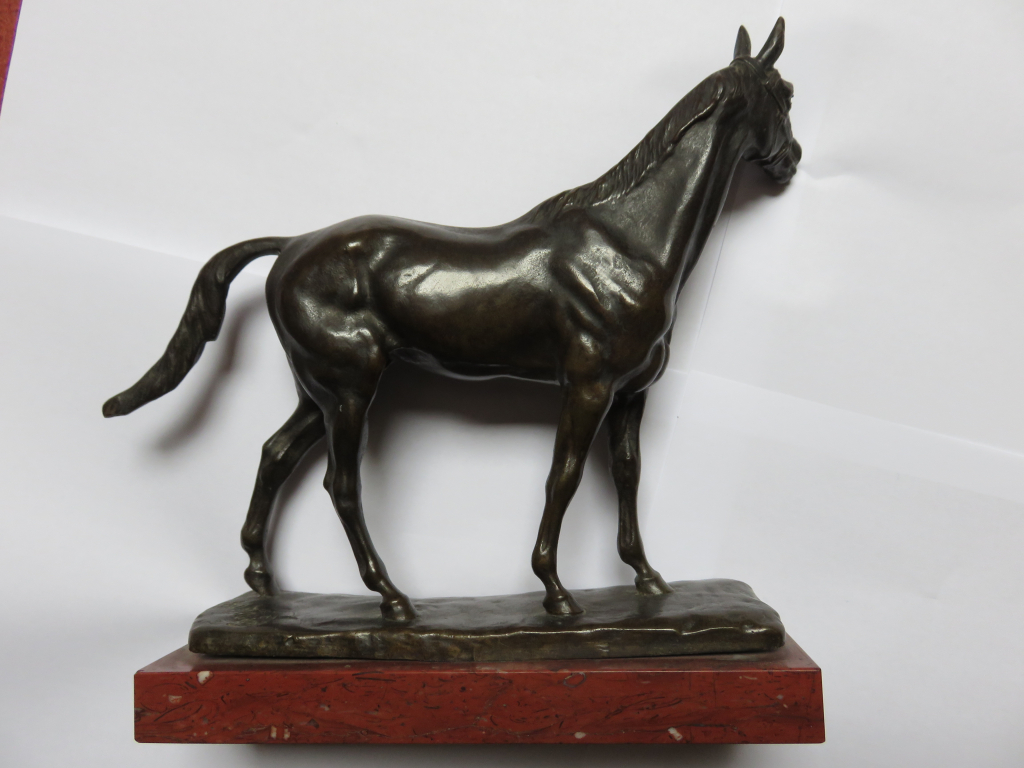 La première approche d’un professionnel du marché de l’art est visuelle. Nos équipes étudient dans un premier temps les différentes photographies de vues d’ensemble et de détails envoyées par le déposant avec sa demande : Cheval en bronze de Gaston d'Illiers sur socle en marbre.