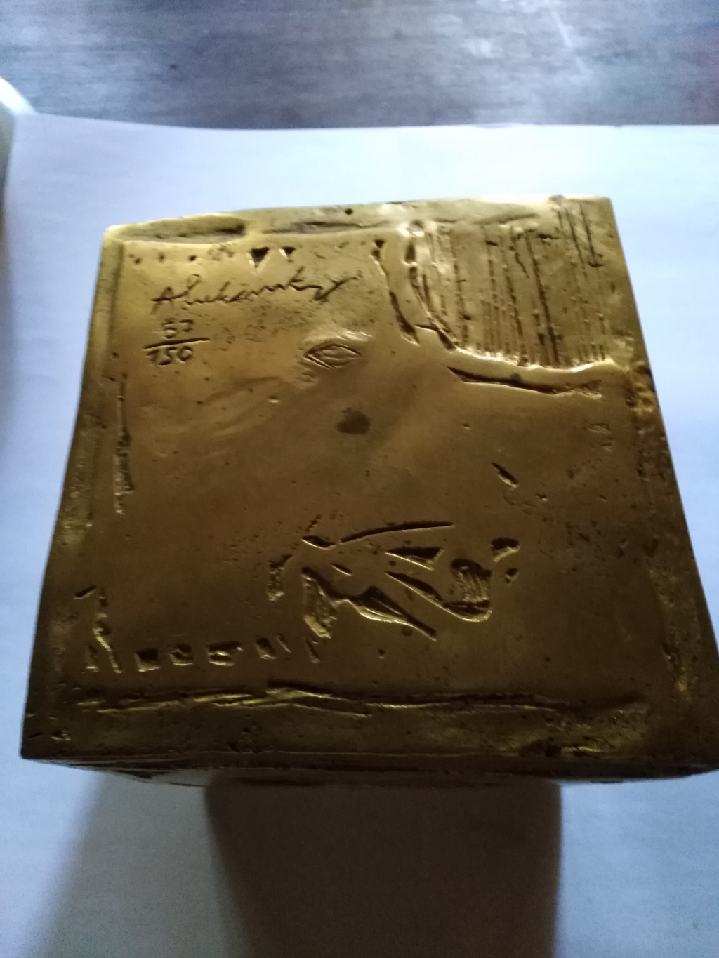 "Cube 6 faces sculptées en bronze signé de l'artiste"