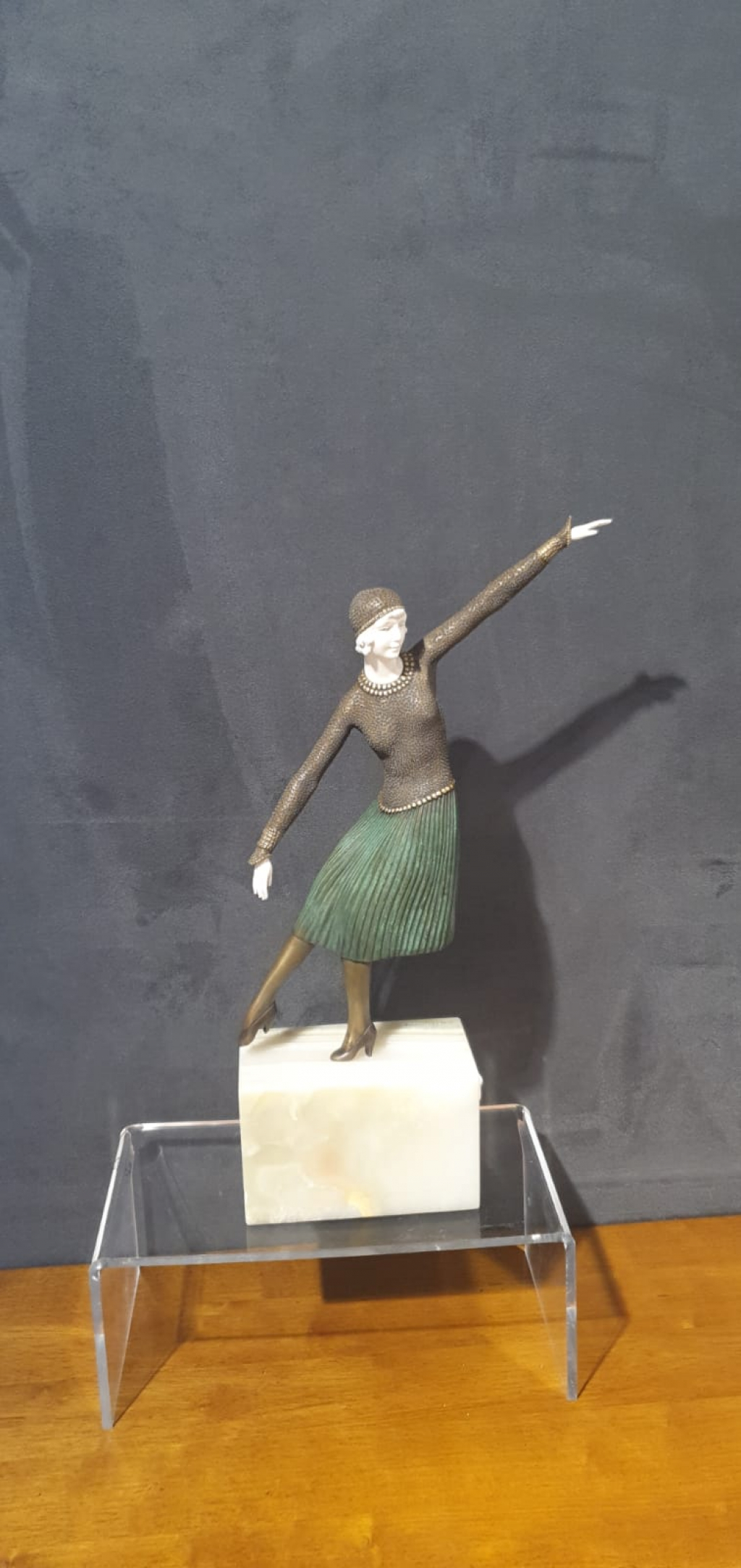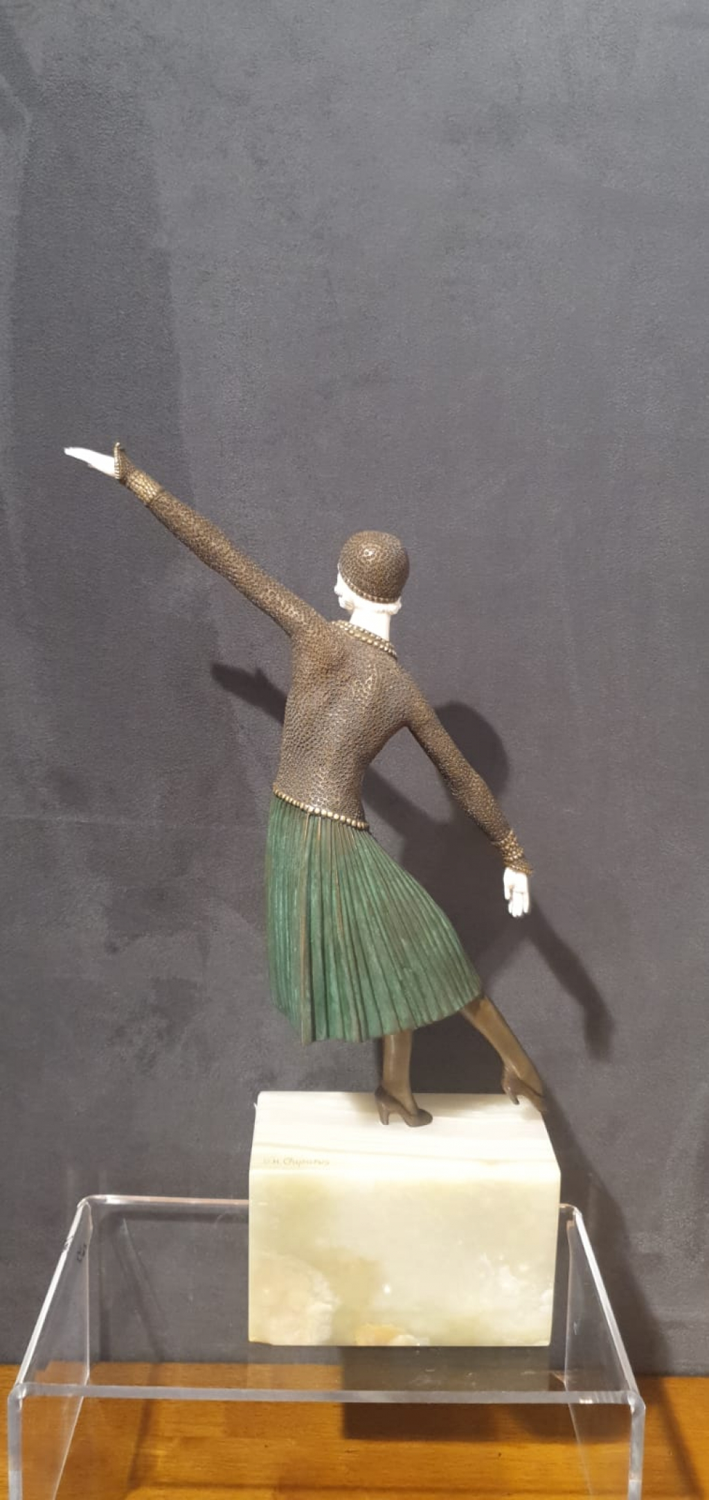 "Statue chryséléphantine de Demettre Chiparus en excellent état sans aucun manque. Elle fait 40 cm de haut sur 20 cm de large. Cordialement."