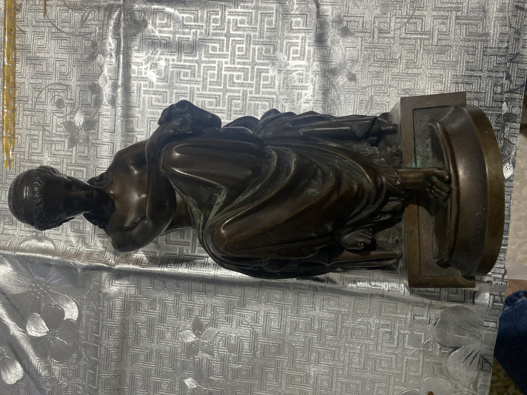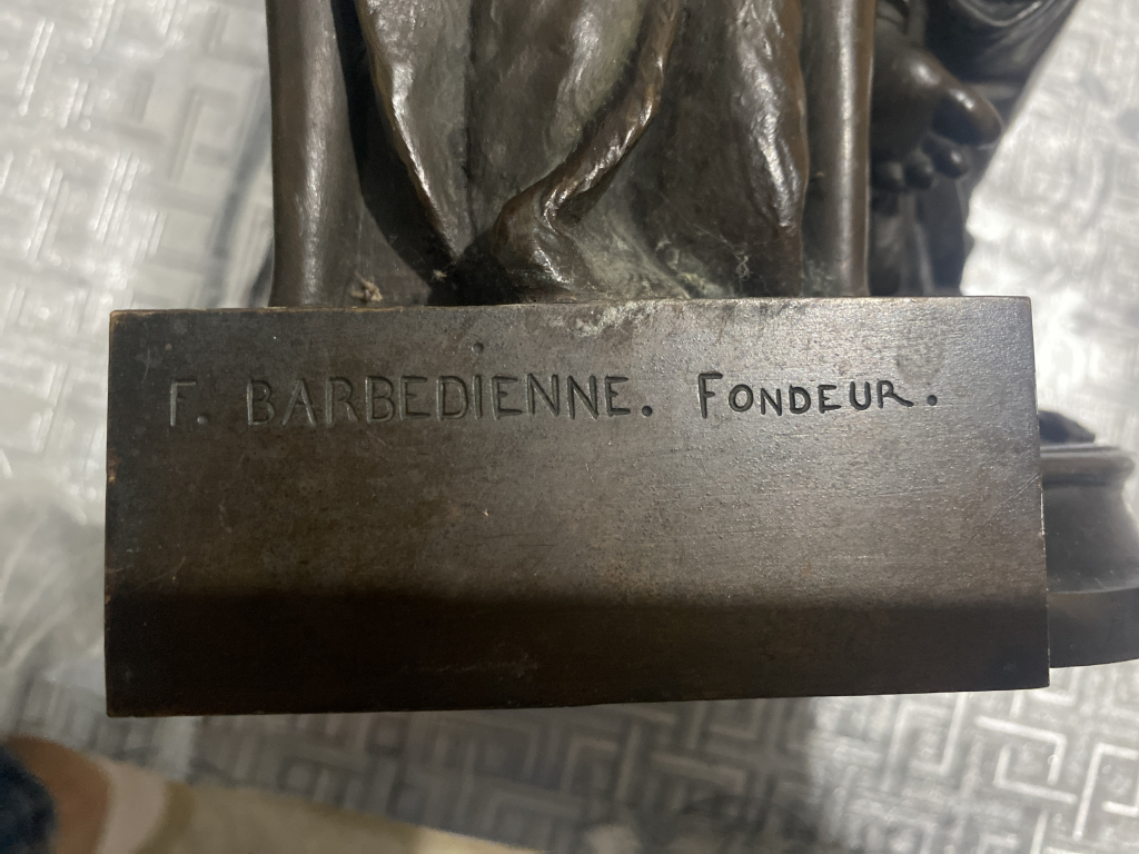 "Sculture d'une femme assise les mains croiser les sein nu Fondateur f. Barbedienne"