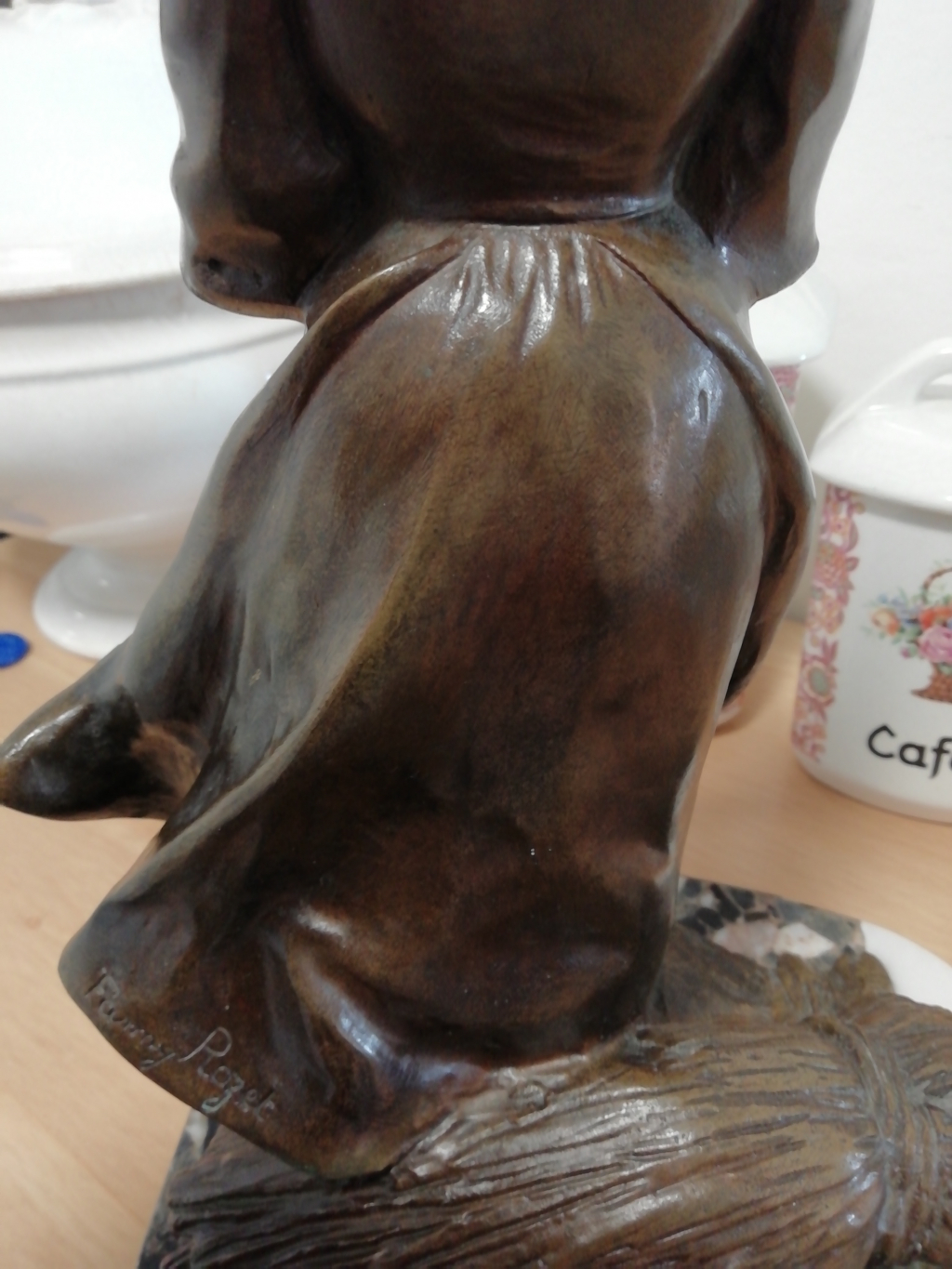 "Jolie Sculpture en bronze double belle patine bronze et argent en très bon état signé Fanny Rozet... HAUTEUR 33 cm environ plus de 10 kg avec joli marbre BELLE FINITION Une plaque est note Hommage à l'ami BERLIER de ses camarades retraités 8 MAI 1936."