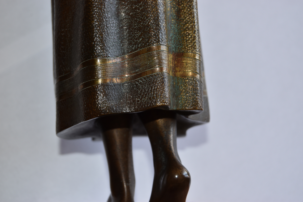 "Artiste : D. Chiparus Bronze hauteur 30cm monté sur socle en marbre rose Signature en bas et au dos du vêtement de la Bédouine Excellent état"