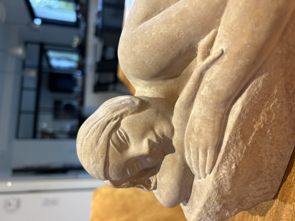 "Statue représentant une femme nue allongée sur le côté Sa coiffure peut faire penser aux années 20"