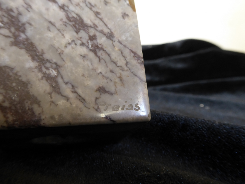 La première approche d’un professionnel du marché de l’art est visuelle. Nos équipes étudient dans un premier temps les différentes photographies de vues d’ensemble et de détails envoyées par le déposant avec sa demande : Figurine sculpture F Preiss.