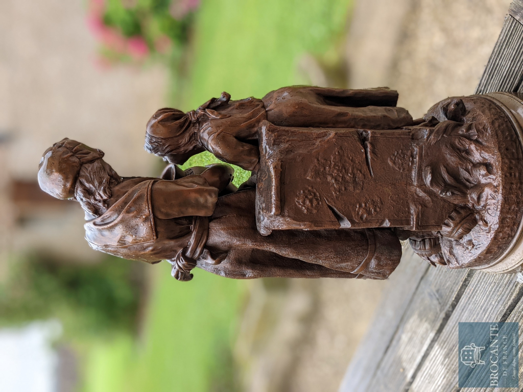 "Bonjour, Je soumets à votre expertise cet imposant groupe en bronze (vérifié) signé Carlier sur la terrasse. La sculpture est posé sur un socle en bronze et métal ce qui permet de le tourner facilement. Le socle est également signé. D'une hauteur de 80cm, son état est exceptionnel tout comme sa patine. Le bien est situé en Franche-Comté. En vous remerciant Bien à vous,"