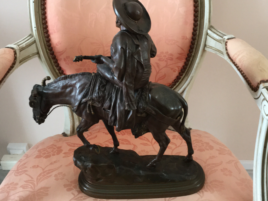 "Groupe en Bronze de patine médaille, signé Isidore BONHEUR (1827-1901), Guitariste andalou chevauchant sa mule » Marque de fondeur PEYROL. Hauteur : 38 cm, Longueur 34 cm"