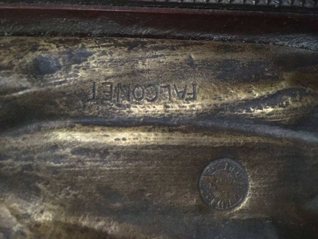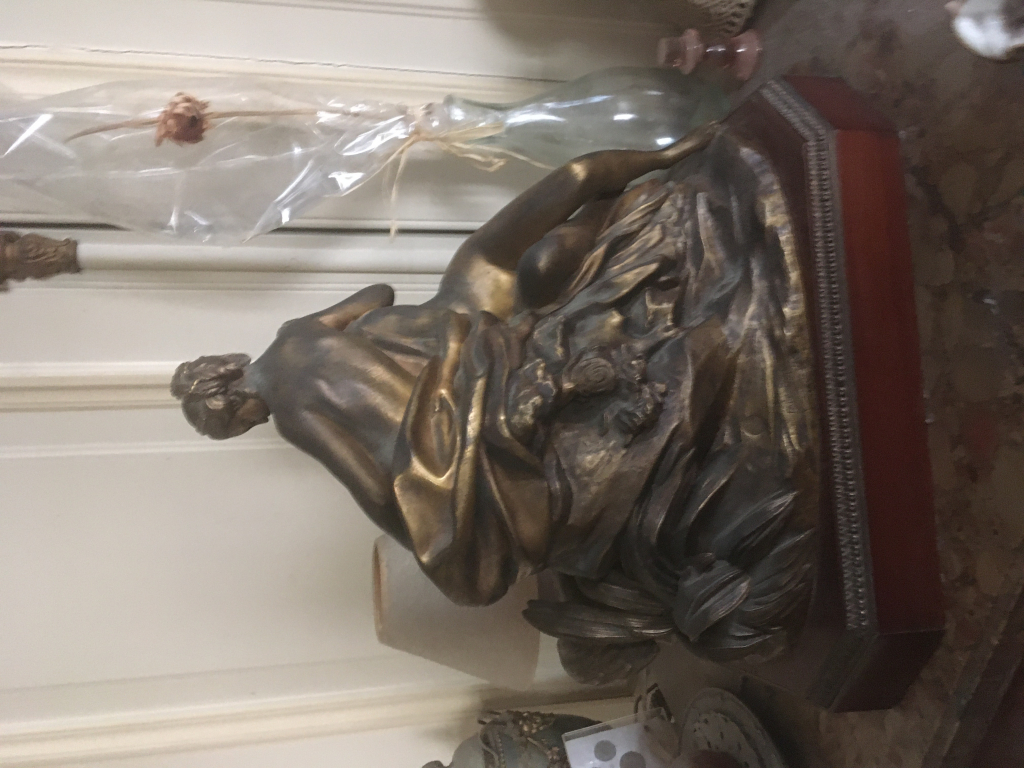 "Sculpture en bronze. Fumiere et cie Signé Faconet Le socle en bois est un peu abîmé (voir photos)"
