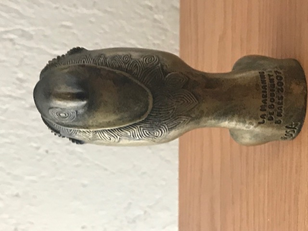 "Hervé DI ROSA La Marianne de Bobigny, 8 mars 2007 Epreuve en bronze à patine dorée Signée et datée Hauteur 10 cm Très bon état Pas de certificat ni facture car cadeau reçu dans le cadre de la Fête des femmes pour la salariées de la Ville de Bobigny"