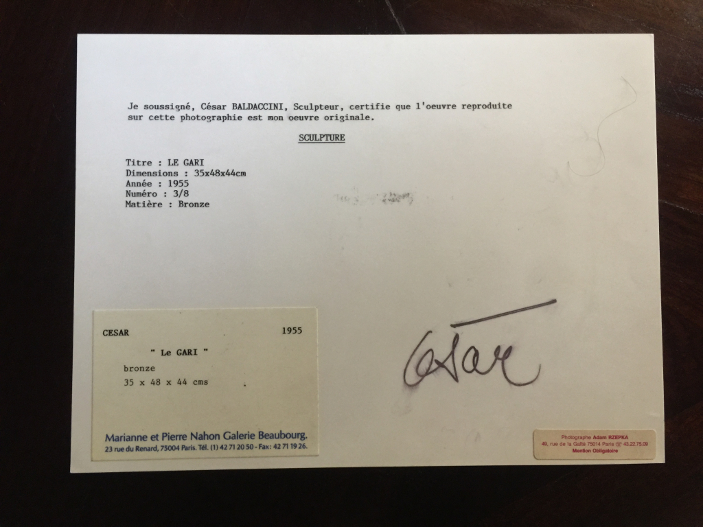 "Sculpture Bronze "Le Gari" de César / Boquel / 1955"