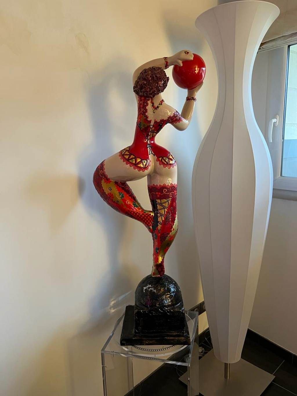 "Très belle sculpture colorée de l’artiste Josepha réalisée en septembre 2010 à Honfleur intitulée le gros ballon Parfait état Actuellement en Normandie"