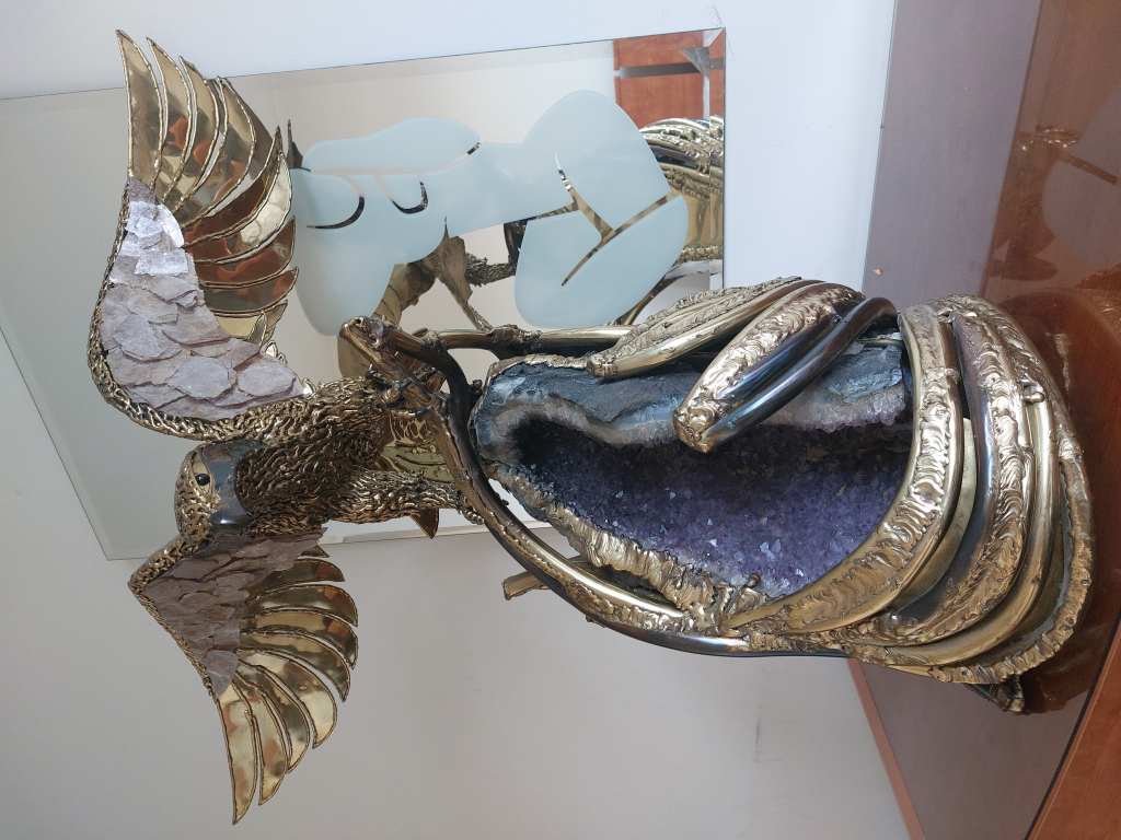 France estimations a reçu la demande d'estimation suivante intitulée par le déposant : Magistral aigle laiton et mica sur amethyste géante.
