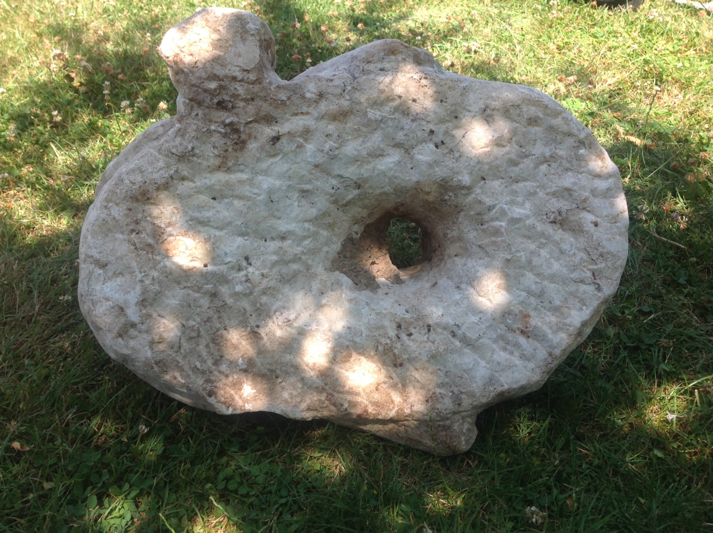 "Mascaron provenant de l'ancien château de Langesse (45). Château construit sous François 1er et démolit en 1880. Il existait bien dans la cour du château une fontaine, les actes notariés la mentionne. Ce mascaron n'est pas signé et est quelque peu abîmé. Un morceau du nez et le noeud droit du foulard ont disparu. Je ne sais pas en quelle matière celui-ci est fait."