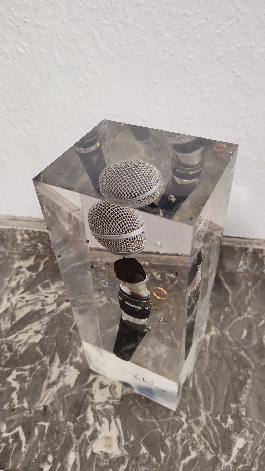 "Sculpture Inclusion Plexiglass Microphone Shure SM58 Artiste: François Bel Année: 2015 Piece Unique"