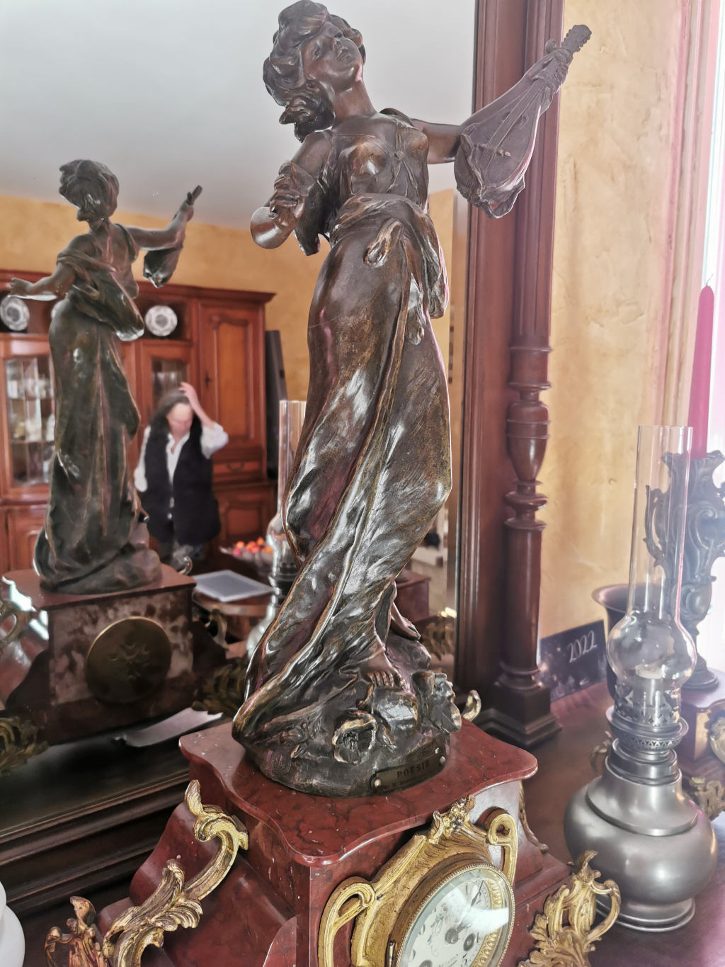 "Représentation de femme à la mandoline. Plus 2 chandeliers"