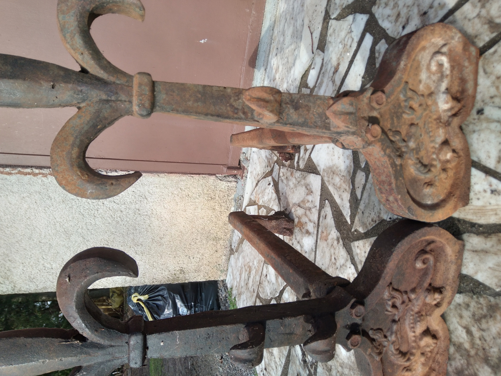 "j ai une plaque en fonte tres lourde avec de chenet en fonte voici les photos"