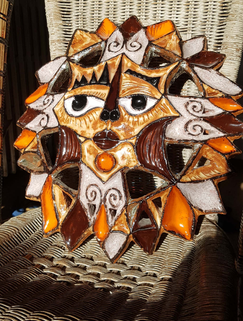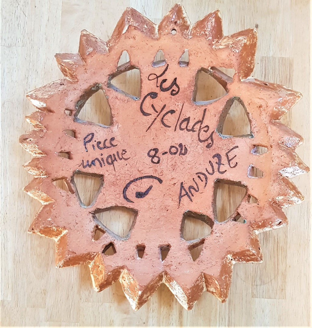 "De l'Atelier des Cyclades, sculpture soleil de R.Zobel, très bon état, 43 cm."