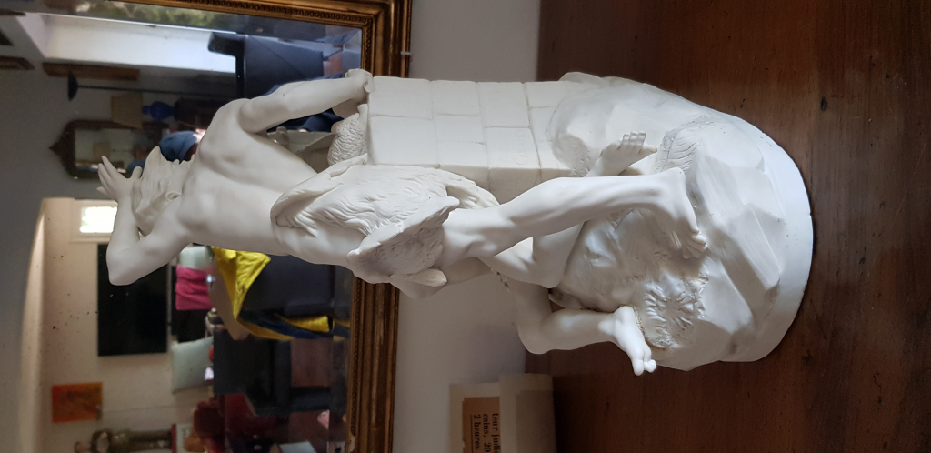"Sculpture de Albert Carrier signée et datée en 1854 à stoke ( grande Bretagne) certainement réalisée lors de son séjour au royaume uni . Grande valeur esthétique et finesse du matériau ( biscuit). La sculpture représente quelques fêlures minimes qui n'ont pas un réel impact sur son esthétique"