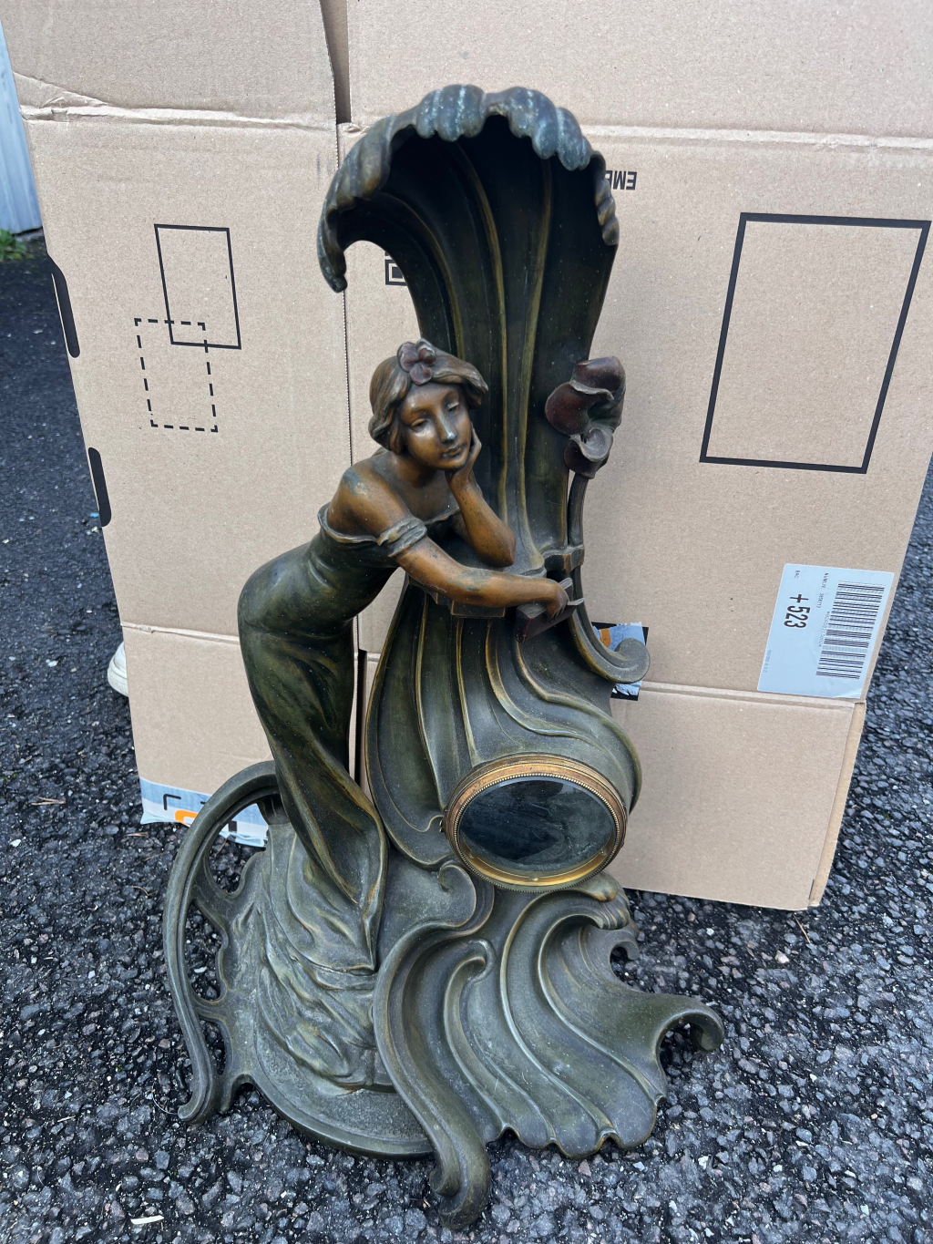 France estimations a reçu la demande d'estimation suivante intitulée par le déposant : Sculpture Art Nouveau, ancienne horloge, patine 60 cm.