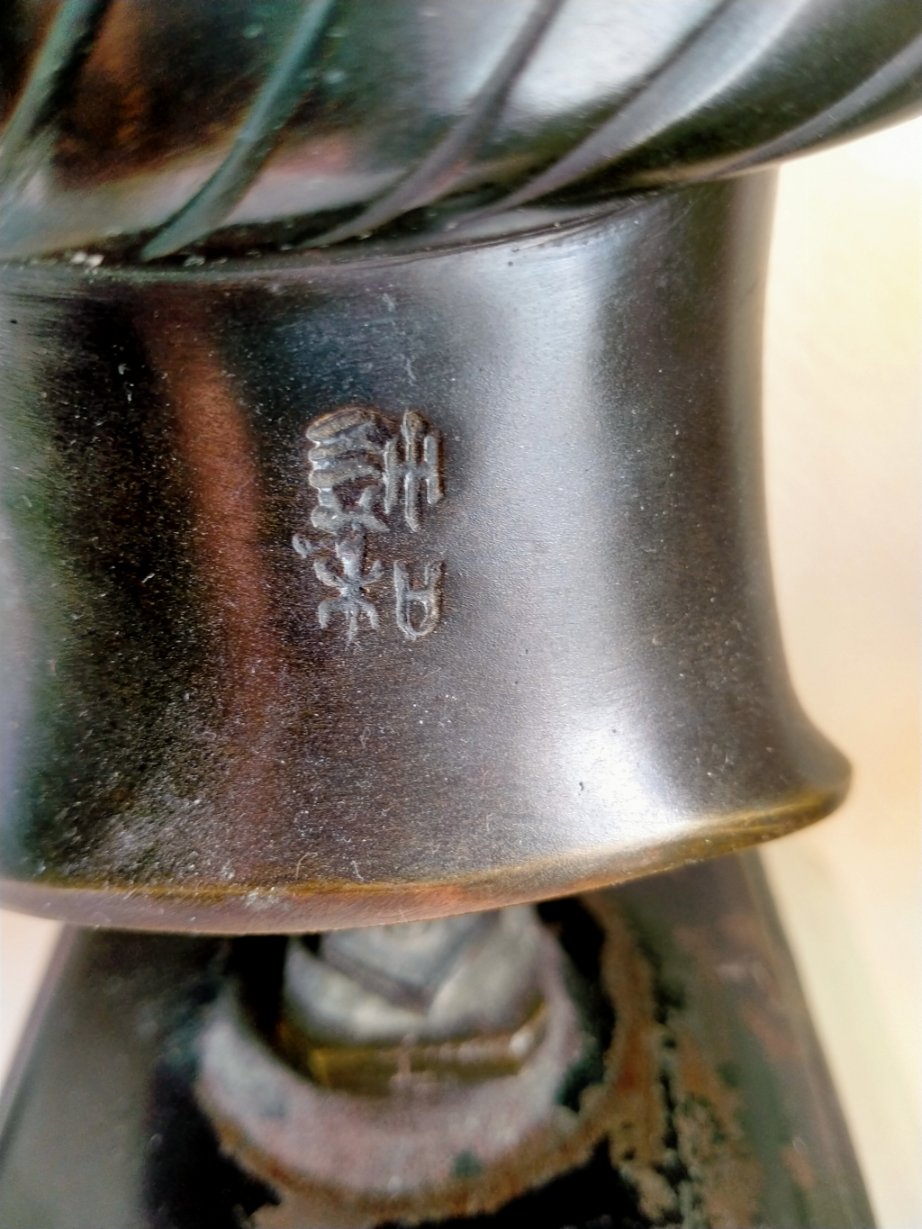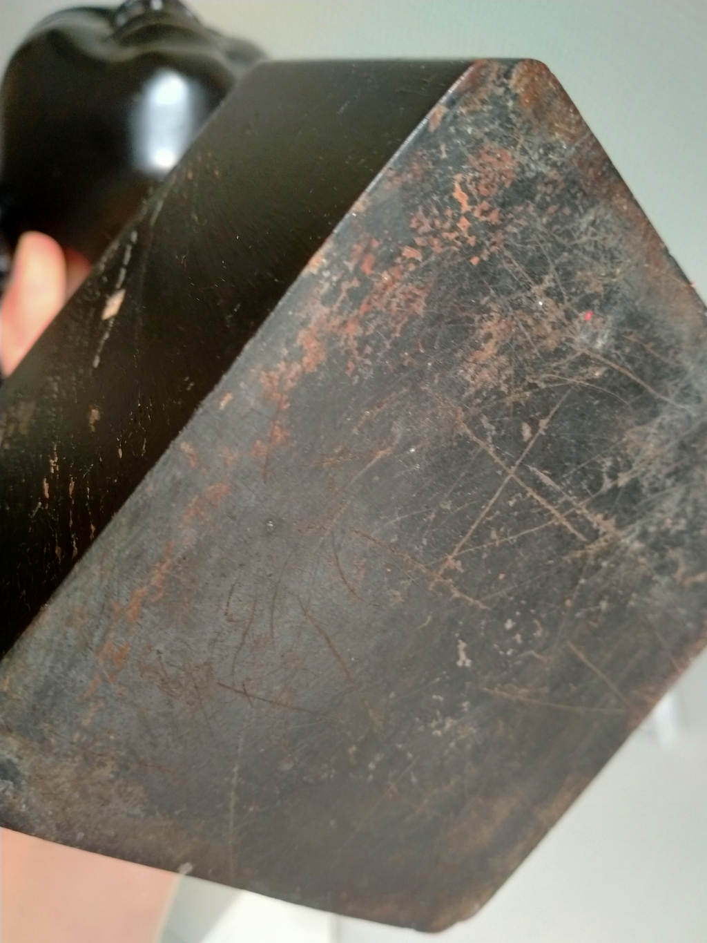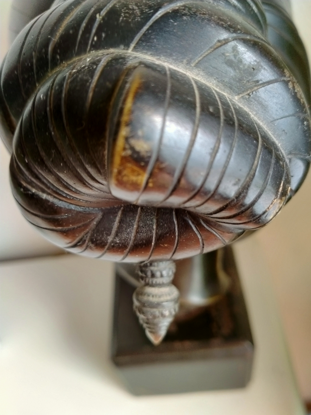 "Sculpture à priori en bronze (lourd) laqué noir. Socle en bois noir également. Représente un visage de femme asiatique. Ramenée par mon grand-père d'Indochine quand il en est revenu en 1954."