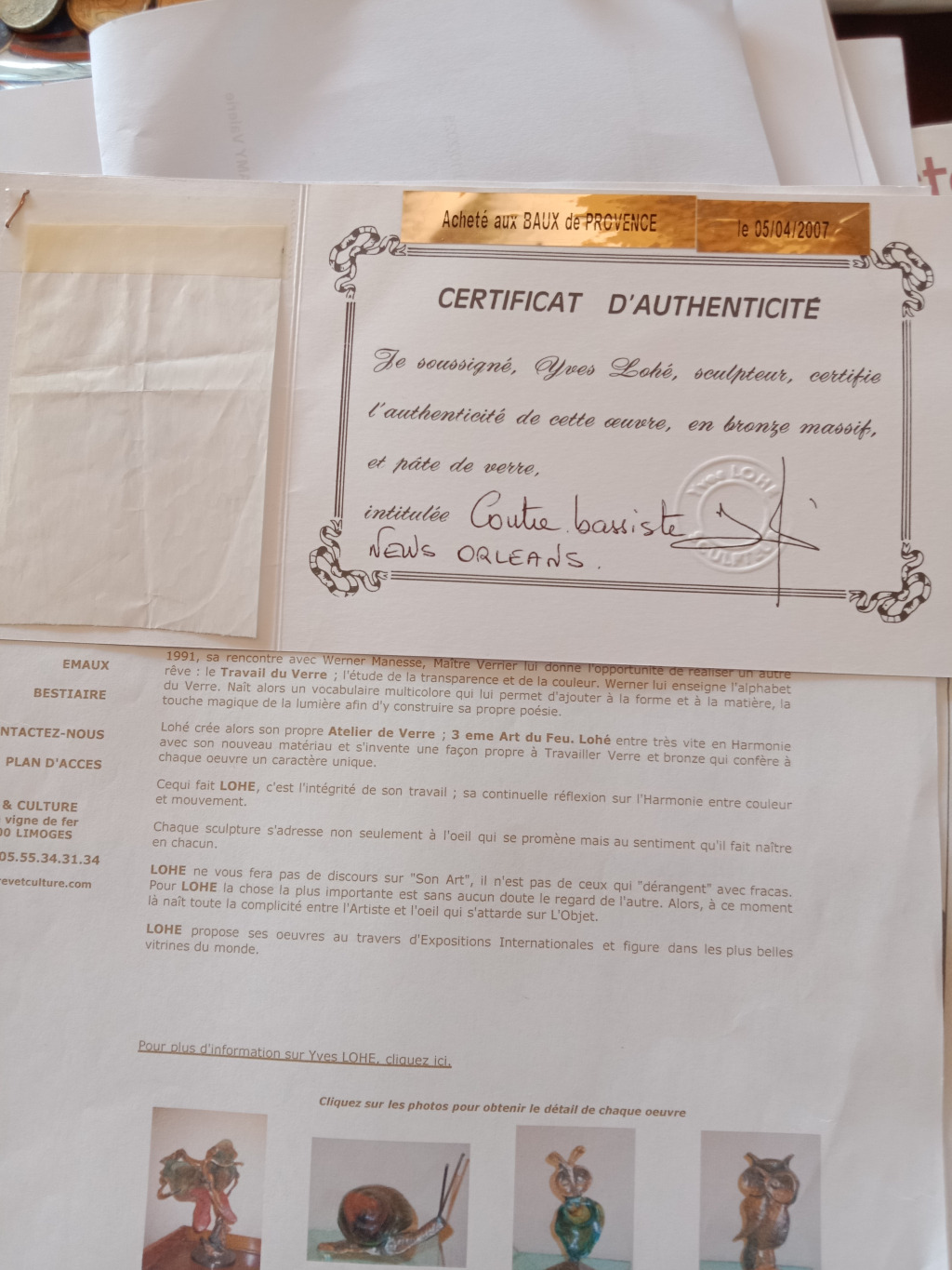 "J'ai un certificat d'authenticité de 2007 acheté 1400 euros"