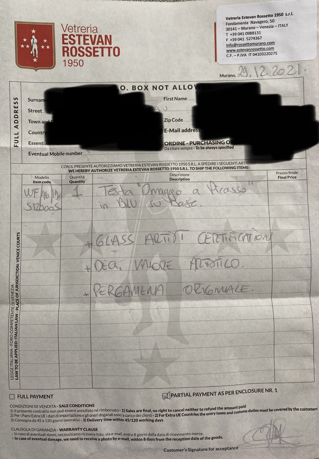 La première approche d’un professionnel du marché de l’art est visuelle. Nos équipes étudient dans un premier temps les différentes photographies de vues d’ensemble et de détails envoyées par le déposant avec sa demande : Sculpture en verre de Murano de Walter furlan.
