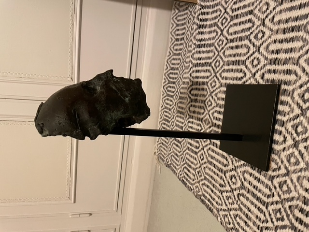 "Tête en bronze par Jean Roulland (non signé ou signature non trouvée). Offert par l'artiste (années 1980)."