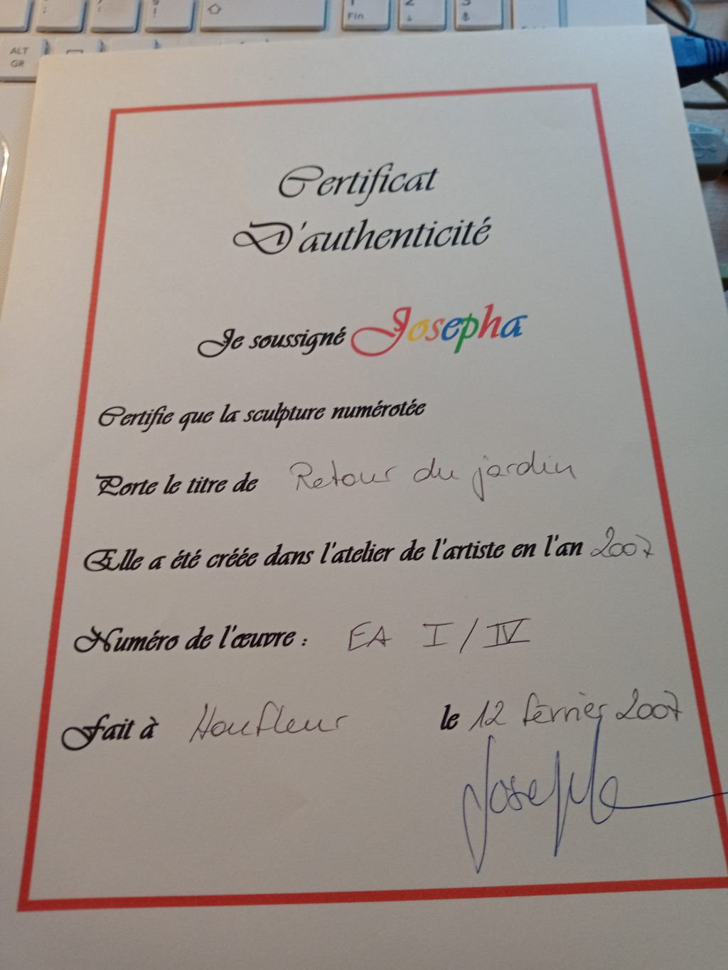 France estimations a reçu la demande d'estimation suivante intitulée par le déposant : Sculpture josepha.