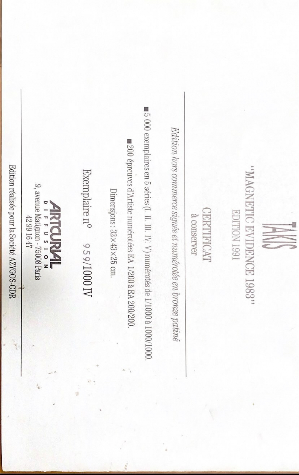 La première approche d’un professionnel du marché de l’art est visuelle. Nos équipes étudient dans un premier temps les différentes photographies de vues d’ensemble et de détails envoyées par le déposant avec sa demande : Sculpture Takis Magnetic evidence 1983.