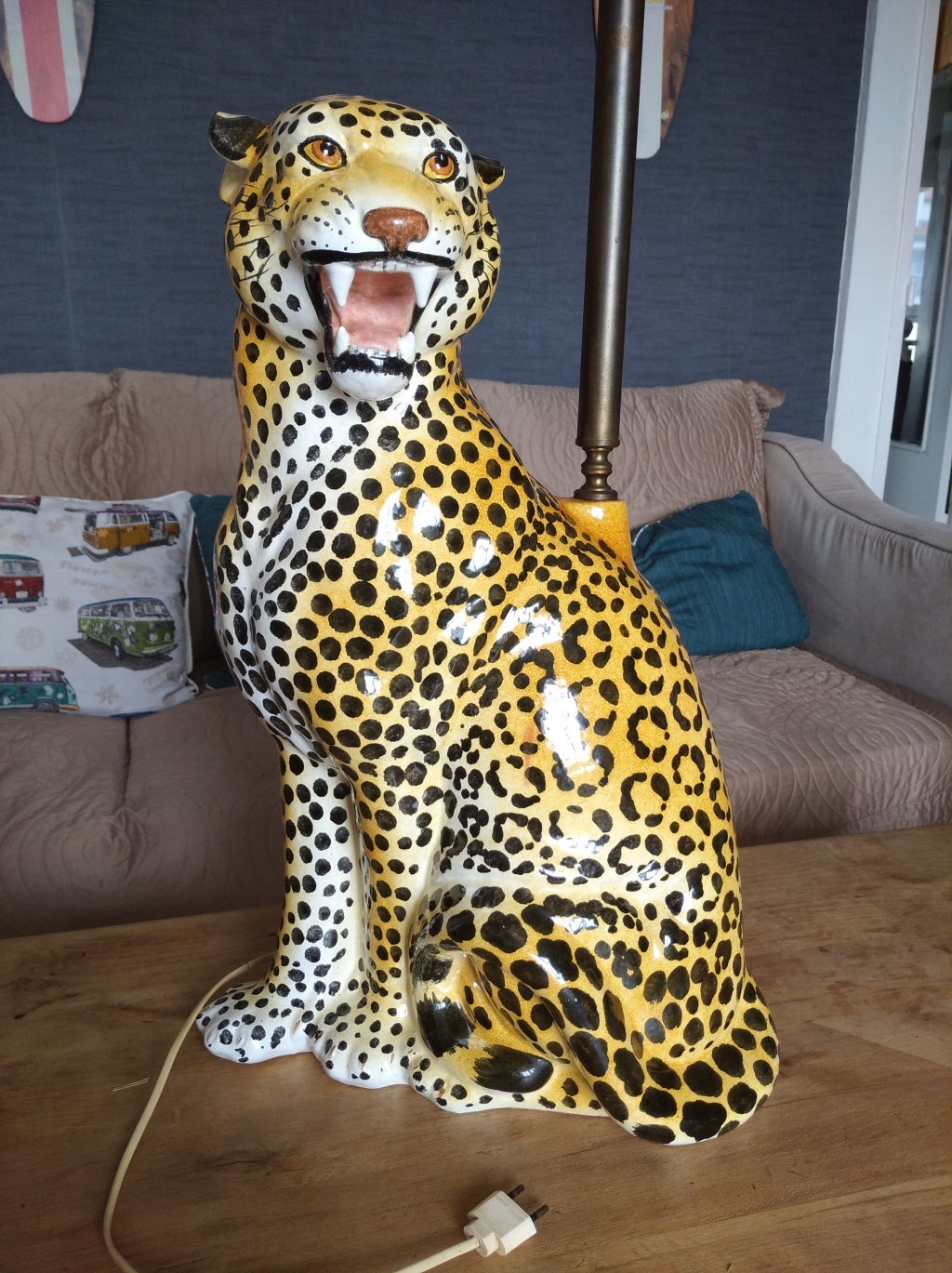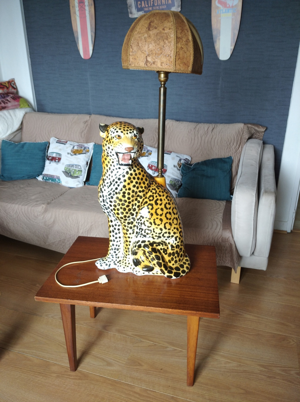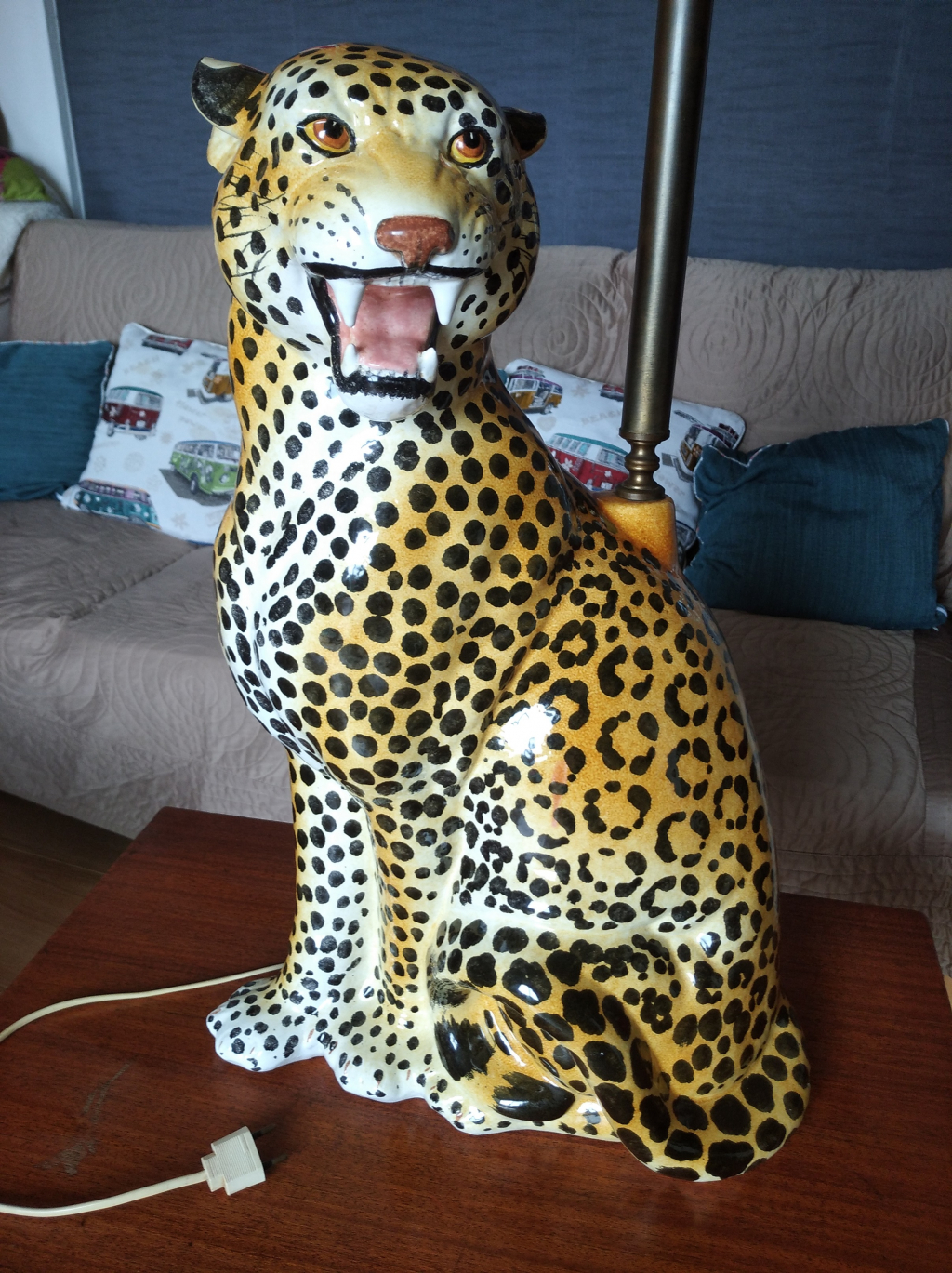 France estimations a reçu la demande d'estimation suivante intitulée par le déposant : Sculture porcelaine lampe léopard années 60.