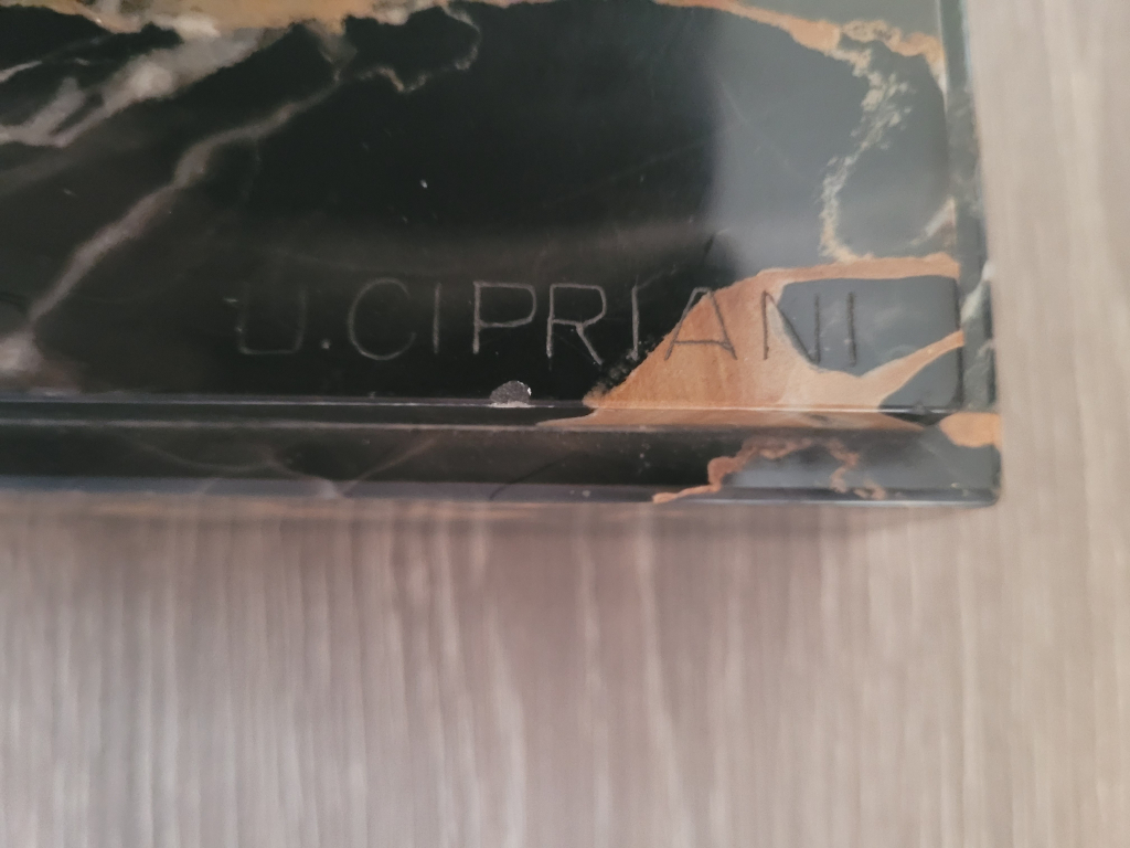 "C'est un socle en marbre noir surmonté d'une statue de femme agenouillée caressant un chien<br /> Longueur 59cms et 15 cms de large<br /> Merci par avance"