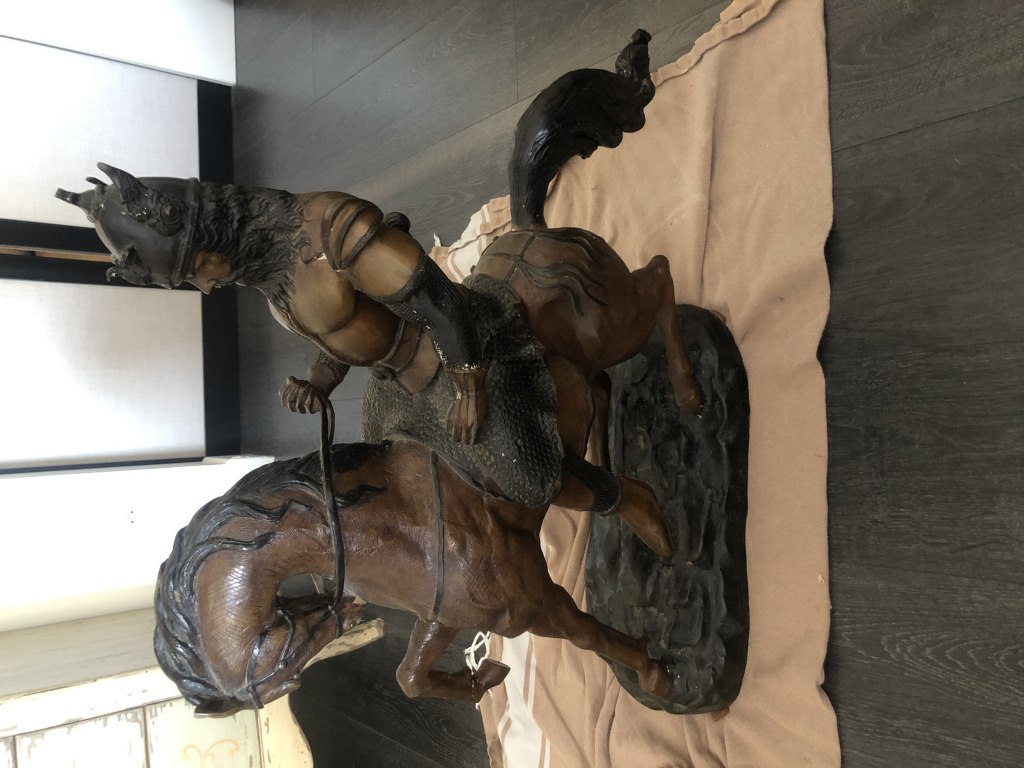 "Soldats à cheval a priori en bronze mais je ne suis pas spécialiste. Objet très lourd pas de signature apparente"