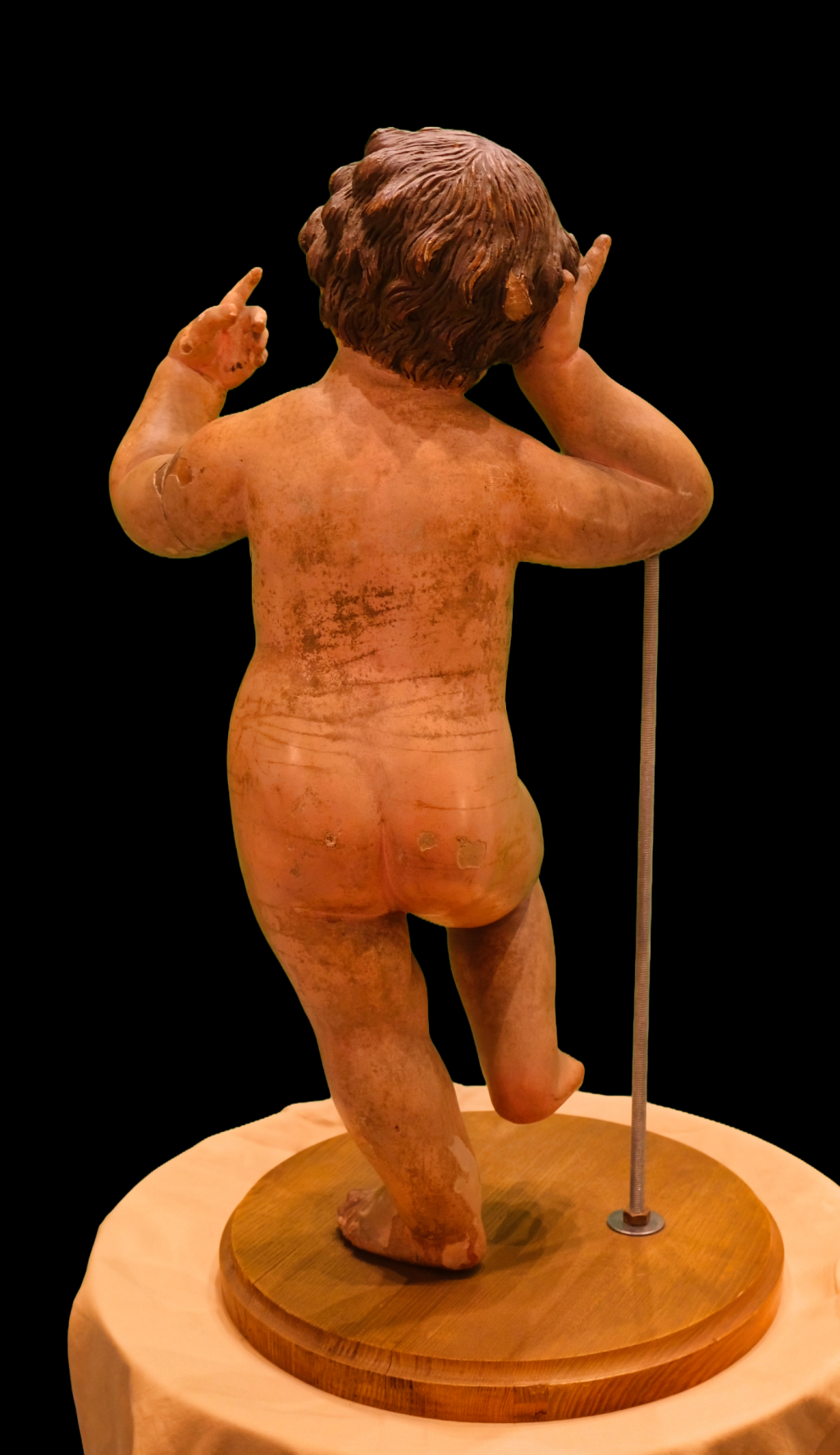 "Statue bois polychrome de l'enfant Jésus, à priori Allemande du XVII ou du XVIIIème siècle, sur socle ajouté."
