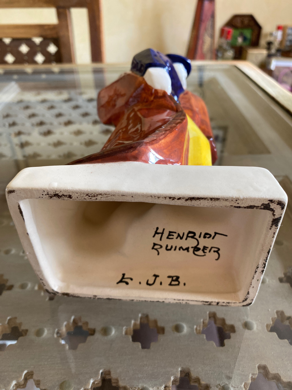 La première approche d’un professionnel du marché de l’art est visuelle. Nos équipes étudient dans un premier temps les différentes photographies de vues d’ensemble et de détails envoyées par le déposant avec sa demande : Statue pêcheur au filet en faïence Emile-Just Bachelet.