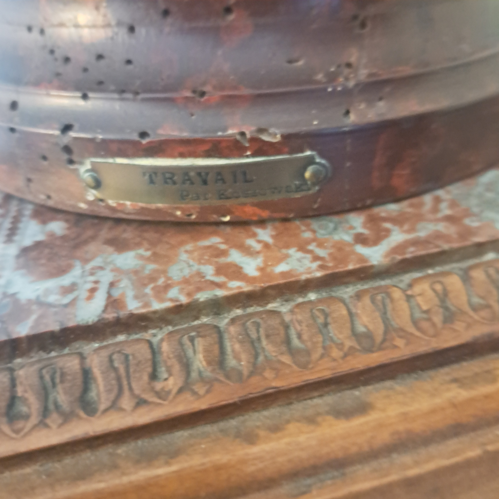 France estimations a reçu la demande d'estimation suivante intitulée par le déposant : Statuette bronze 'Travail' H50cm sur socle bois.