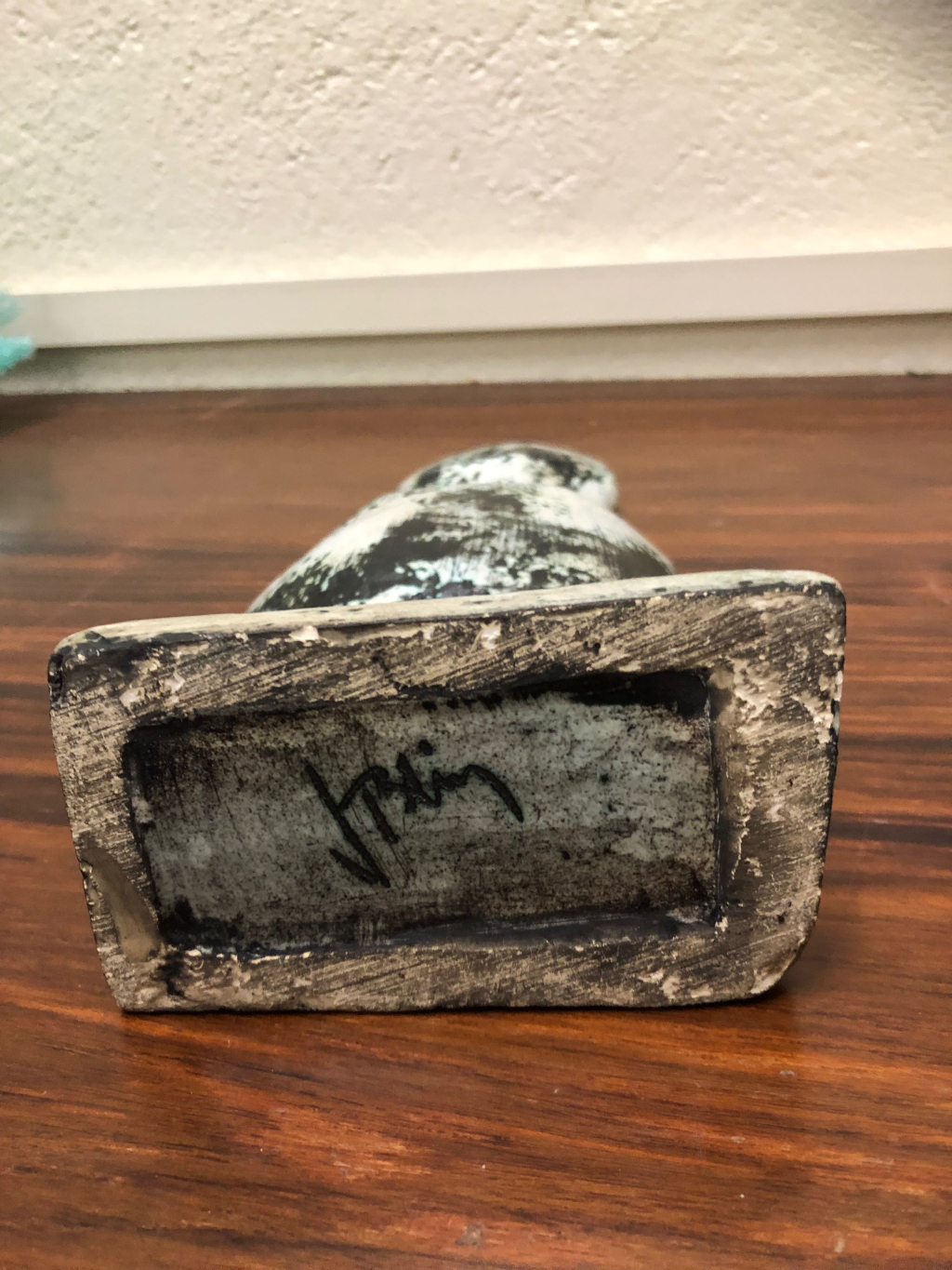 La première approche d’un professionnel du marché de l’art est visuelle. Nos équipes étudient dans un premier temps les différentes photographies de vues d’ensemble et de détails envoyées par le déposant avec sa demande : Statuette Jacques Blin - Femme, 1959, 25,5cm.