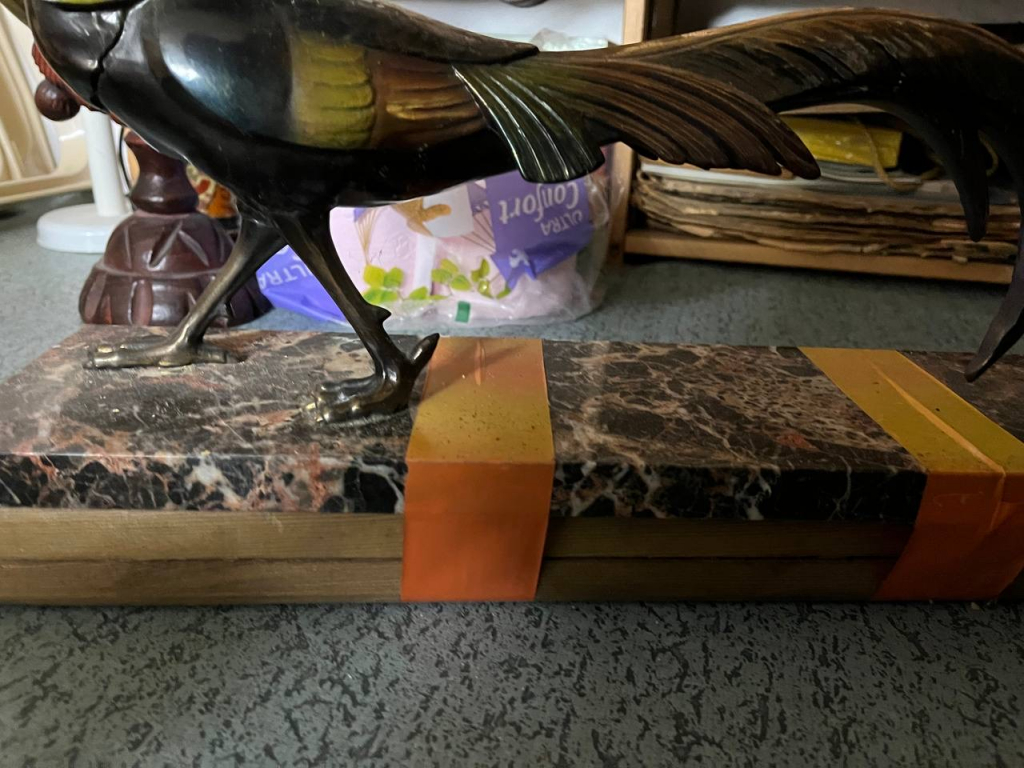 "Bonjour, Il s’agit de deux statuettes avec sol en marbre représentant un oiseau pour le premier et une dame portant un oiseau pour le second. J’aimerais connaître l’estimation de ces statuettes. Cordialement Romain Dubois"