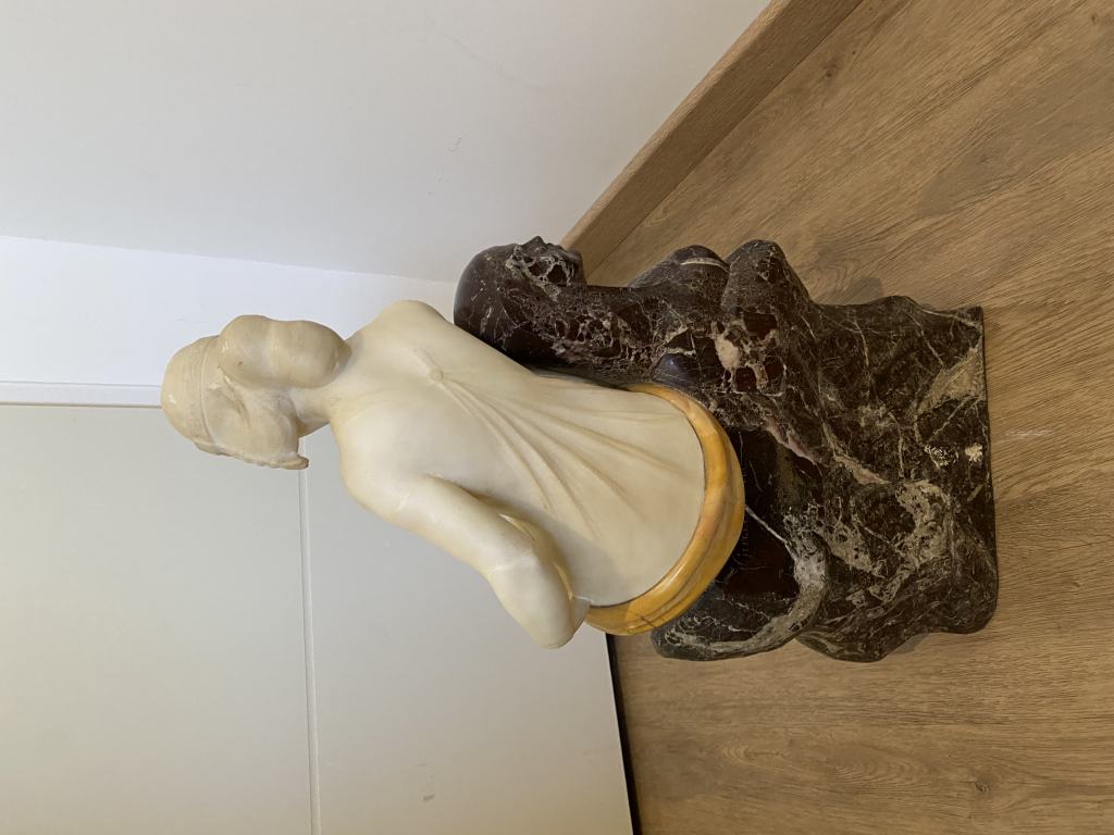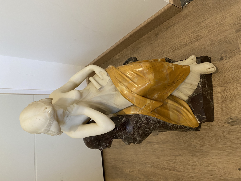 La première approche d’un professionnel du marché de l’art est visuelle. Nos équipes étudient dans un premier temps les différentes photographies de vues d’ensemble et de détails envoyées par le déposant avec sa demande : Statut marbre signée Guillaume ( peut-être Eugène Guillaume).