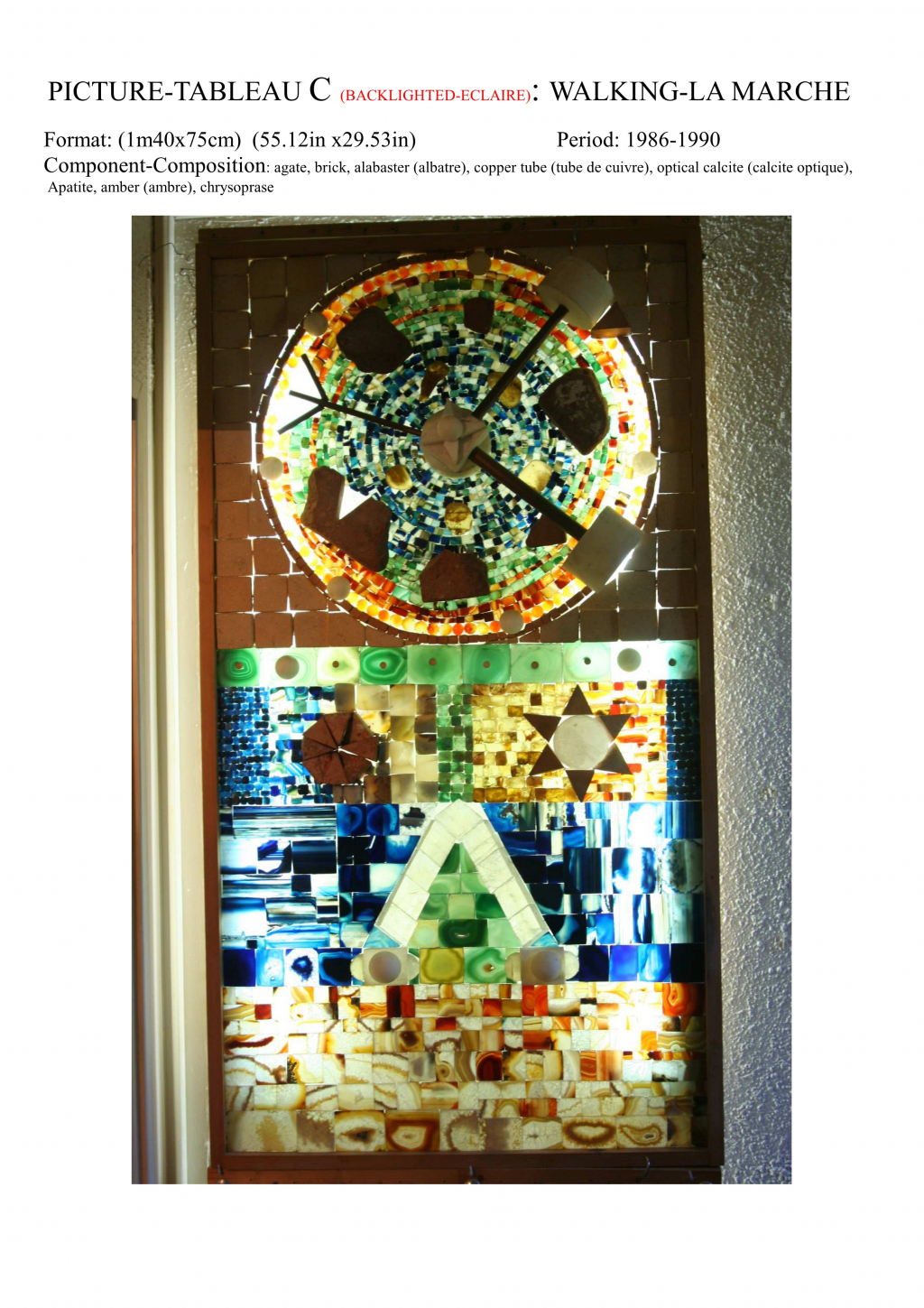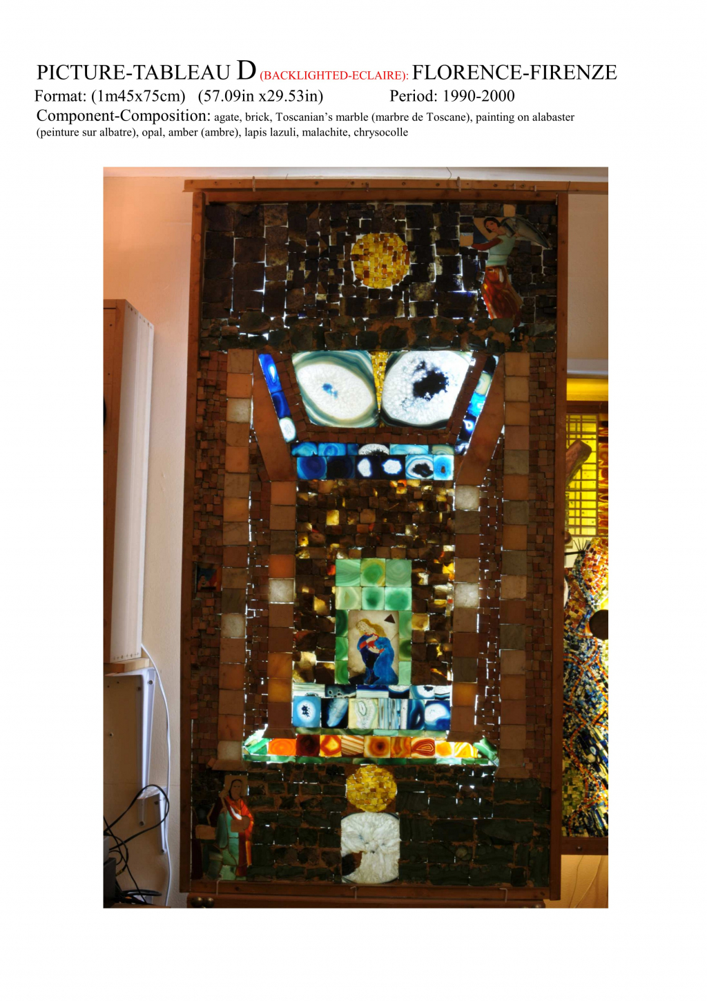 "Bonjour, je m'appelle mr charles barbier, j'habite à meudon 92190 et de 1980 à 2010 j'ai réalisé 10 tableaux (ce que j'appelle tableaux) qui sont en fait des compositions avec des pierres naturelles (agate,lapis,fluorite...) que je découpe et colle sur une grande vitre qui est éclairé par derriere mr charles barbier 15 rue jules hetzel 92190 meudon **.**.**.**.** **.**.**.**.**"