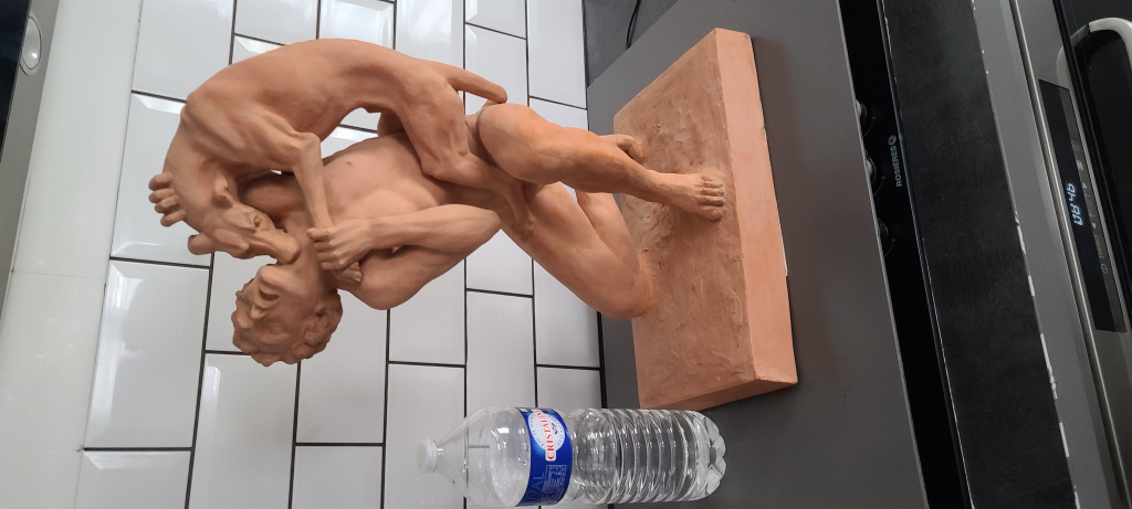 "belle sculpture en terre cuite signé Y.gallo hauteur 55cm très bonne état (légende du chien de montargis )"