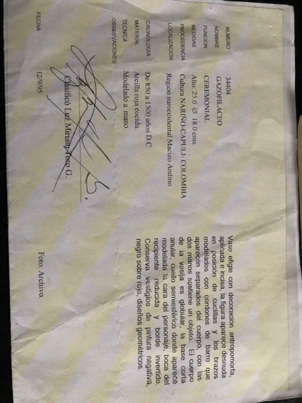 La première approche d’un professionnel du marché de l’art est visuelle. Nos équipes étudient dans un premier temps les différentes photographies de vues d’ensemble et de détails envoyées par le déposant avec sa demande : vase funéraire colombie.