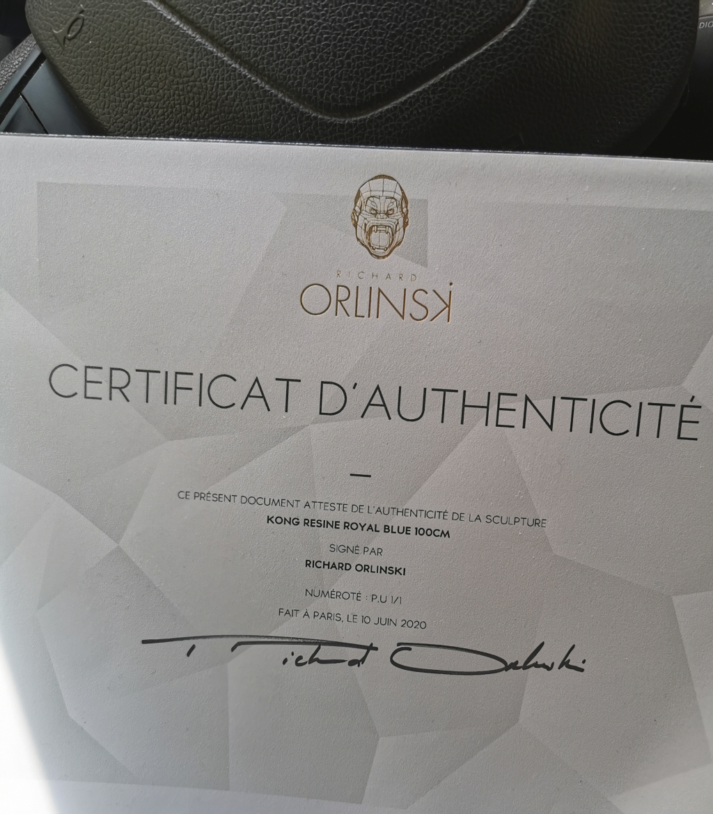 "Wild kong blue royal De Richard Orlinski signé par l'artiste d'une hauteur de 1 mètre."