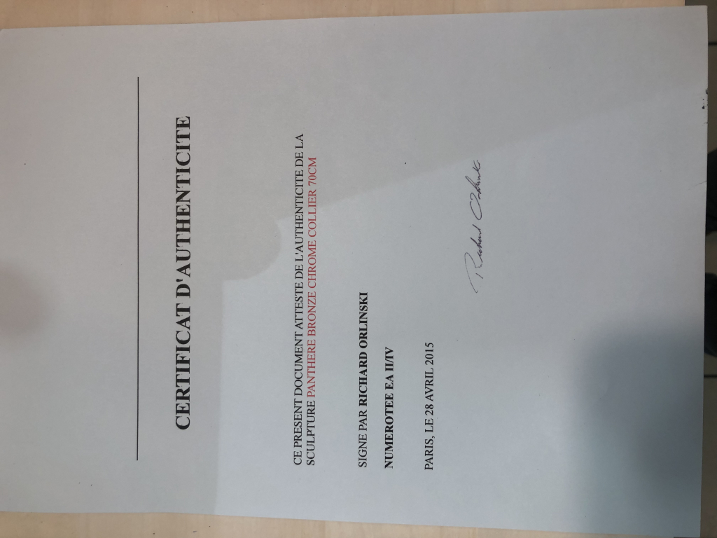 La première approche d’un professionnel du marché de l’art est visuelle. Nos équipes étudient dans un premier temps les différentes photographies de vues d’ensemble et de détails envoyées par le déposant avec sa demande : Wild panther 70 cm by Richard Orlinski.