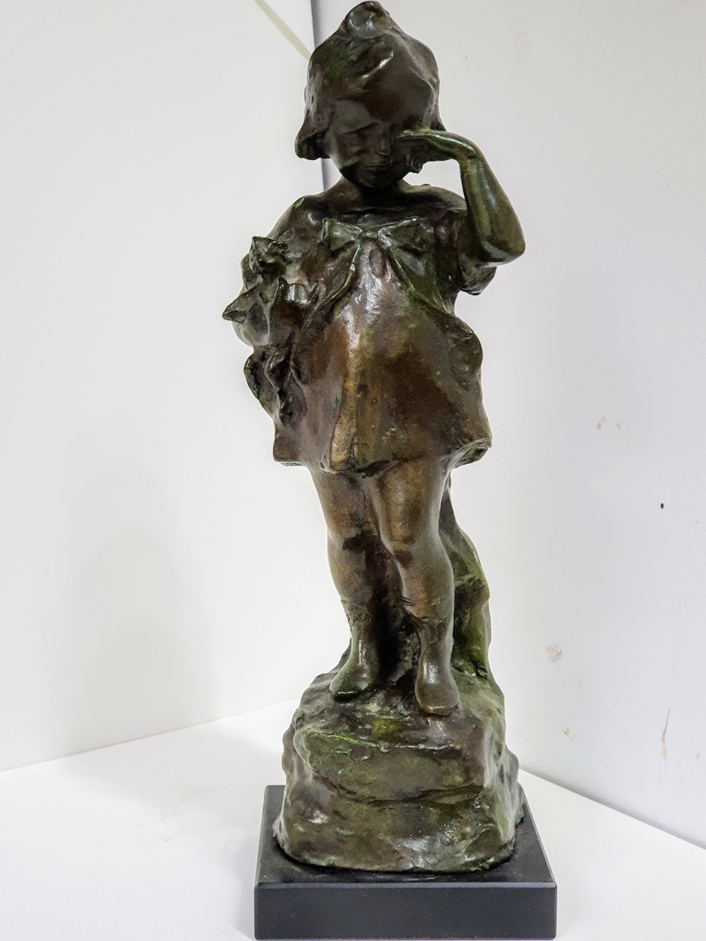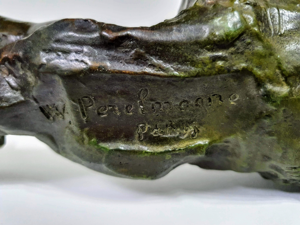 "Stunning beautiful bronze impressionist sculpture, "Little girl with cat" back signed W. Perelmagne, located Paris and numbered 4. PERELMAGNE / PERELMAN, Vladimir / Wladimir (Saratov, Russia 1870 - Paris 1922 ) . This work was bought from an antique gallery in Anvers by the previous owner. I didn't receive any invoice or certificate.. ."